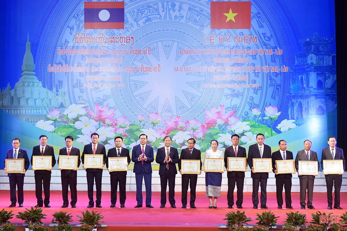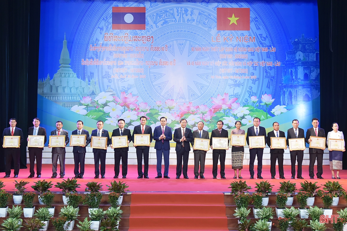 Nhân dịp này, UBND tỉnh Hà Tĩnh đã trao bằng khen cho 25 tập thể và 50 cá nhân thuộc tỉnh Bolikhămxay và Khăm Muồn (nước CHDCND Lào) đã có thành tích xuất sắc trong gìn giữ, vun đắp tình đoàn kết hữu nghị truyền thống đặc biệt và hợp tác toàn diện giữa 2 nước Việt Nam - Lào nói chung, tỉnh Hà Tĩnh với các tỉnh Bolikhămxay và Khăm Muồn nói riêng.