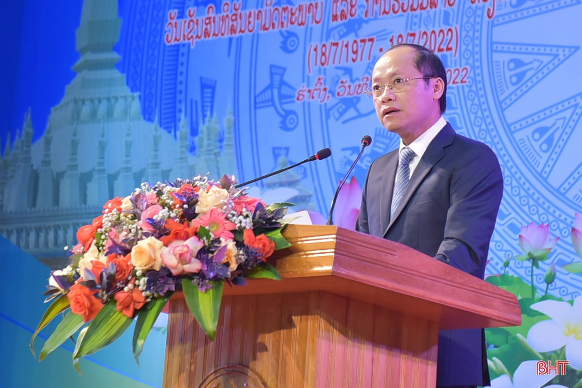 Trình bày diễn văn tại lễ kỷ niệm, Bí thư Tỉnh ủy Hà Tĩnh Hoàng Trung Dũng nhấn mạnh: Việt Nam - Lào, Lào - Việt Nam, hai nước láng giềng gần gũi, cùng uống chung dòng nước Mê Kông, cùng tựa lưng vào dãy Trường Sơn hùng vĩ. Nhìn lại chặng đường lịch sử hào hùng mà hai dân tộc đã trải qua, chúng ta hết sức tự hào về mối quan hệ mẫu mực, trong sáng, hết mực thủy chung. Tiếp nối truyền thống son sắt, thủy chung, trong công cuộc đổi mới, quan hệ hợp tác toàn diện giữa hai nước Việt Nam - Lào không ngừng được củng cố, phát triển.
