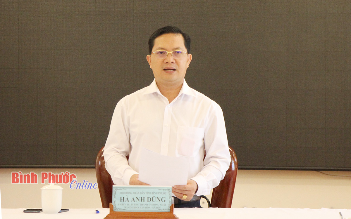 Ủy viên Ban Thường vụ Tỉnh ủy, Bí thư Thành ủy Đồng Xoài, Trưởng ban Văn hóa - Xã hội HĐND tỉnh Hà Anh Dũng chủ trì cuộc họp. Cùng dự có đại diện lãnh đạo các sở, ban, ngành liên quan.