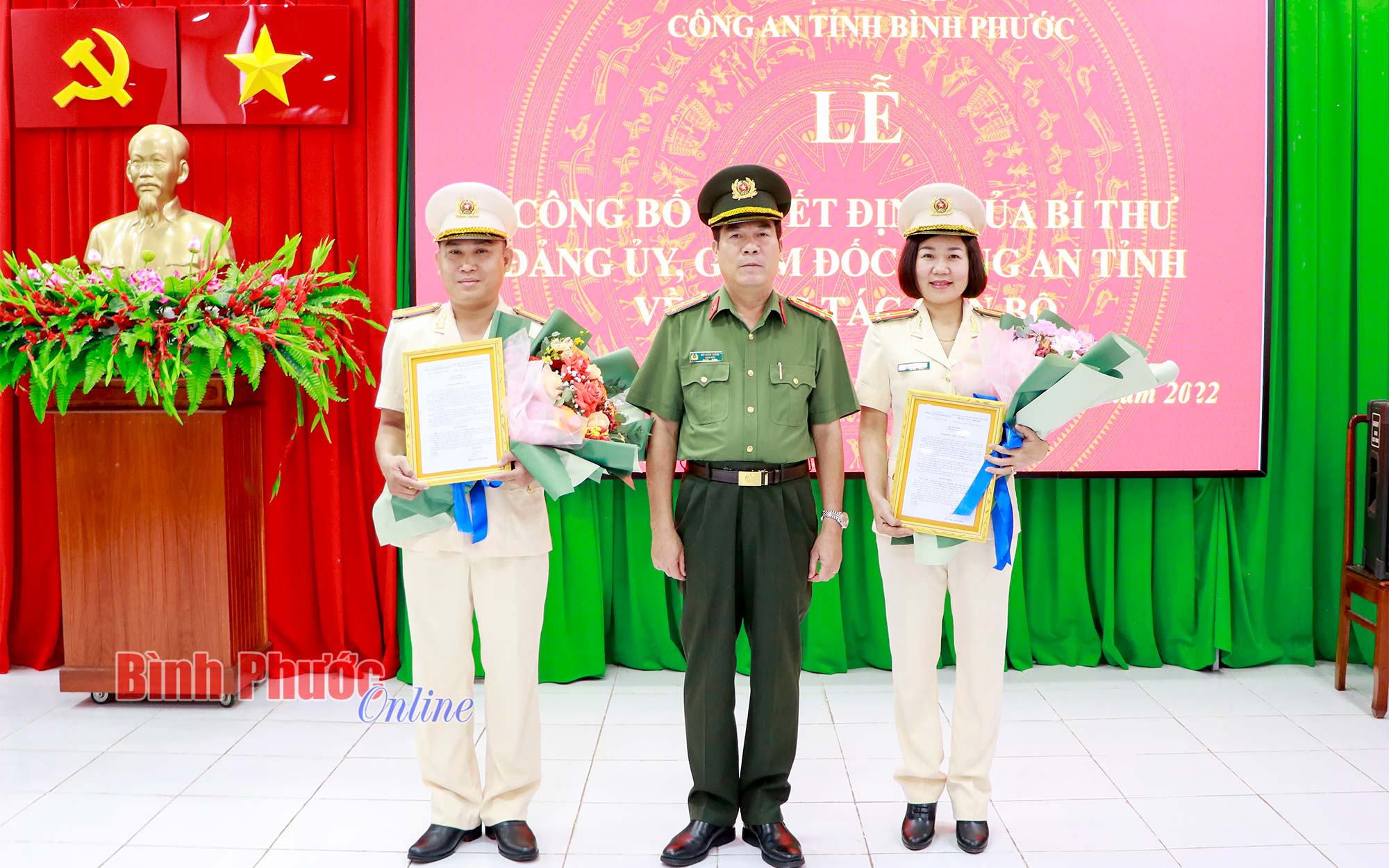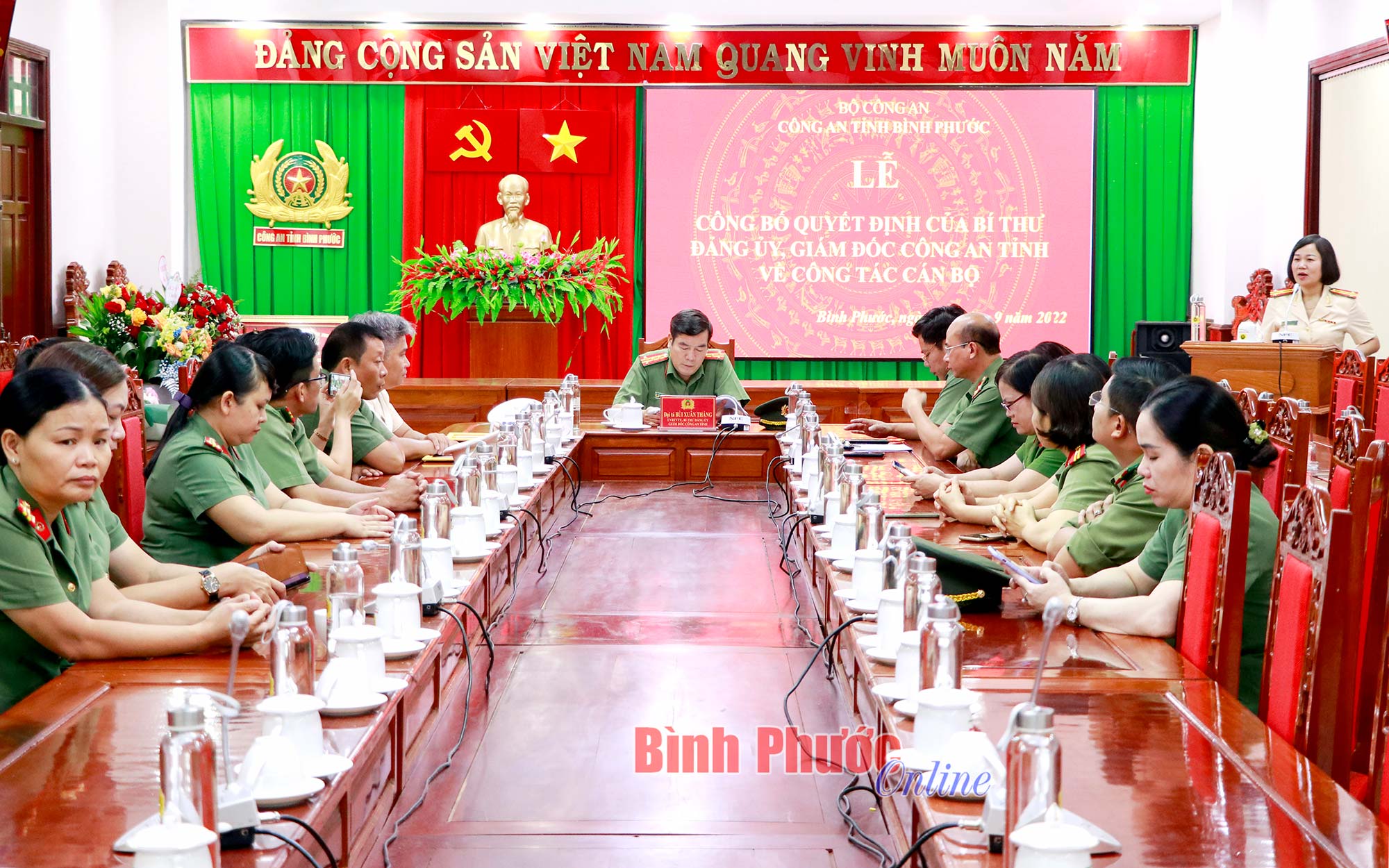 Tại buổi lễ, sau phần công bố của lãnh đạo Phòng Tổ chức cán bộ Công an tỉnh, Đại tá Bùi Xuân Thắng đã trao quyết định bố trí cán bộ đối với Thượng tá Nguyễn Thị Xuân, sinh năm 1977, quê quán tỉnh Quảng Bình là Phó chủ nhiệm Thường trực Ủy ban Kiểm tra Đảng ủy Công an tỉnh, Phó trưởng phòng Công tác đảng và công tác chính trị đến nhận công tác và giữ chức vụ Thủ trưởng cơ quan Ủy ban Kiểm tra Đảng ủy Công an tỉnh; trao quyết định bố trí Trung tá Lê Thanh Minh, sinh năm 1979, quê quán tỉnh Nghệ An, hiện là Phó chủ nhiệm chuyên trách Ủy ban Kiểm tra Đảng ủy Công an tỉnh giữ chức vụ Phó thủ trưởng cơ quan Ủy ban Kiểm tra Đảng ủy Công an tỉnh. 2 quyết định có hiệu lực từ ngày 6-9-2022.