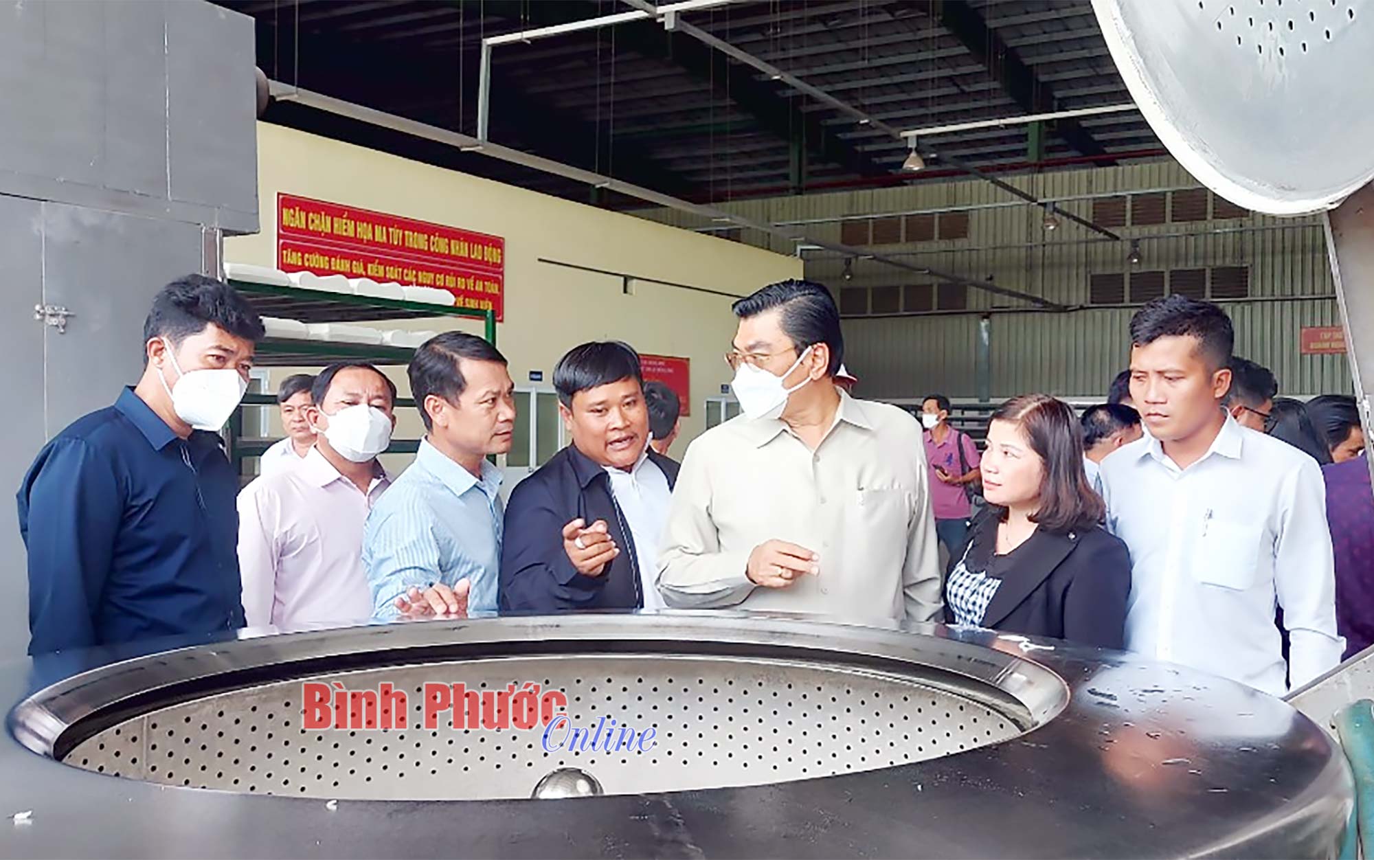 Trong chuyến công tác, đoàn đã được tham quan thực tế các địa điểm như: Nhà máy sản xuất nệm cao su Đồng Phú tại xã Tân Lập, huyện Đồng Phú; mô hình trồng rau hữu cơ của hộ ông Bùi Viết Tiễn, thành viên hợp tác xã rau sạch tại phường Tân Thiện, thành phố Đồng xoài; Công ty TNHH CPV Food tại huyện Chơn Thành; Trại giống thủy sản tại xã Thuận Lợi, huyện Đồng Phú; mô hình vườn điều tại xã Long Tân, huyện Phú Riềng và Nhà máy chế biến hạt điều Vinahe tại phường Phước Bình, thị xã Phước Long.