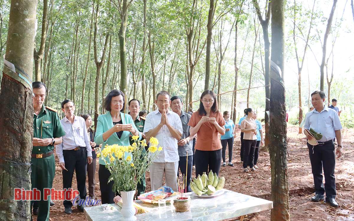 Đoàn công tác Ban chỉ đạo 515 tỉnh thắp hương tại thực địa vị trí ấp 2, xã Minh Đức, huyện Hớn Quản