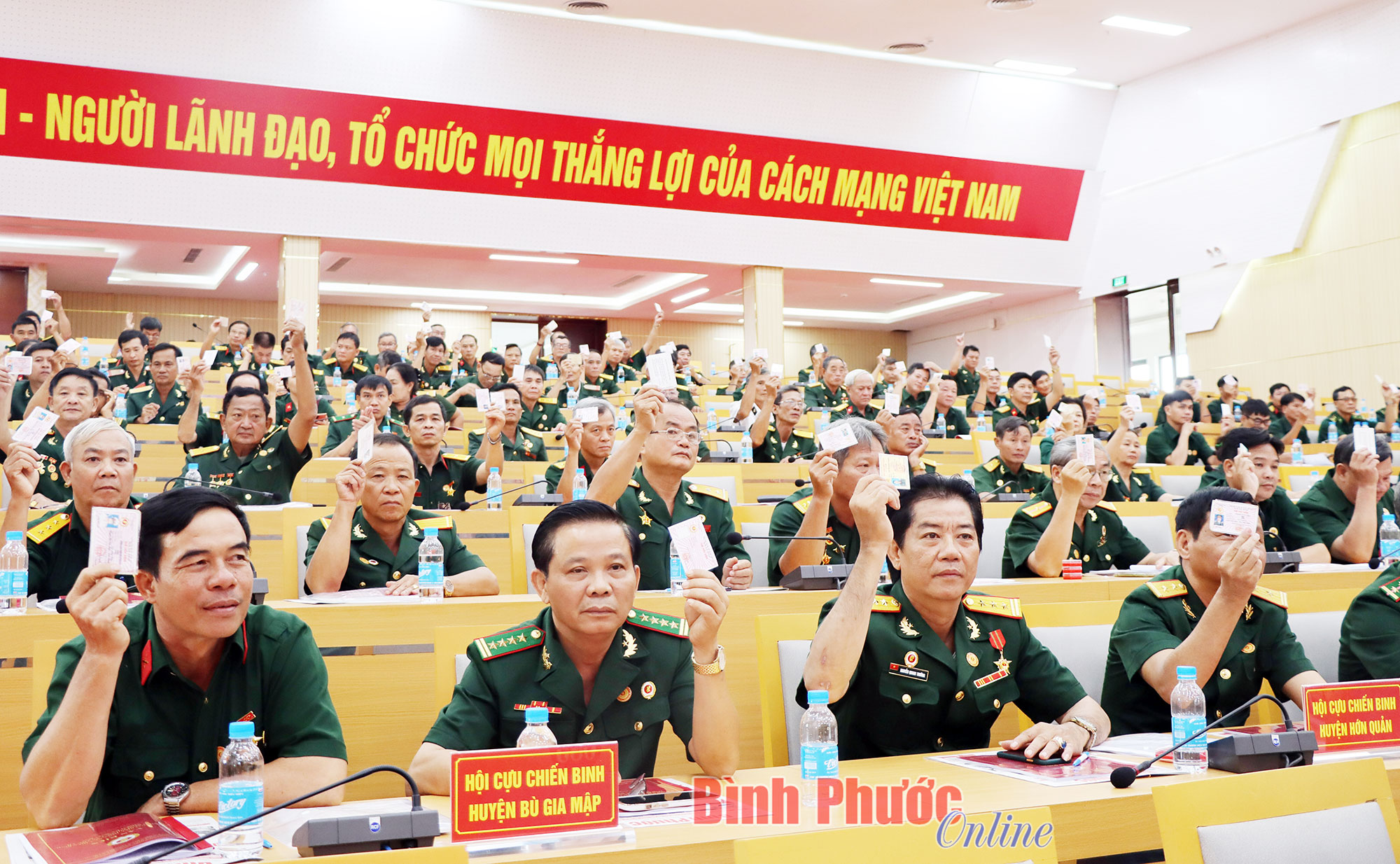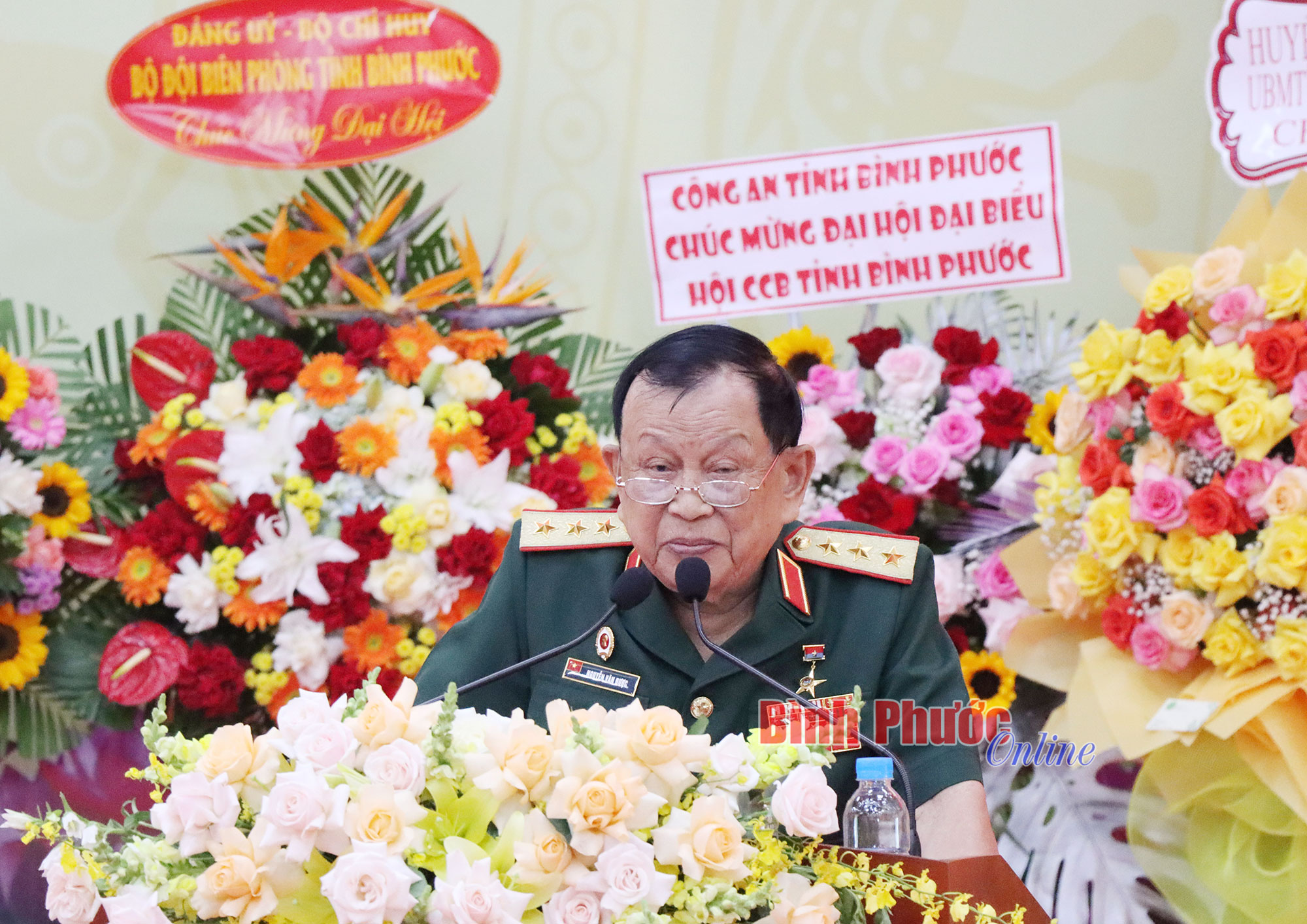 Phát biểu tại đại hội, Thượng tướng Nguyễn Văn Được, Bí thư Đảng đoàn, Chủ tịch Hội CCB Việt Nam đề nghị hội CCB các cấp trong tỉnh tiếp tục tập trung xây dựng và phát triển tổ chức hội vững mạnh; đề ra chương trình hoạt động sát với chủ trương của cấp ủy đảng, đáp ứng nguyện vọng chính đáng của hội viên CCB; thực hiện tốt quy chế dân chủ ở cơ sở và chức năng giám sát, phản biện xã hội; làm tốt hơn nữa hoạt động nghĩa tình đồng đội... Hội CCB tỉnh Bình Phước cần thường xuyên nắm chắc tình hình, diễn biến tư tưởng của cán bộ, hội viên và nhân dân để chủ động tham gia giải quyết “từ sớm, từ xa, từ cơ sở” các vụ việc khiếu nại, tố cáo phức tạp, kéo dài và không để kẻ xấu lợi dụng xuyên tạc, kích động tạo điểm nóng, giảm niềm tin của nhân dân đối với Đảng, Nhà nước.