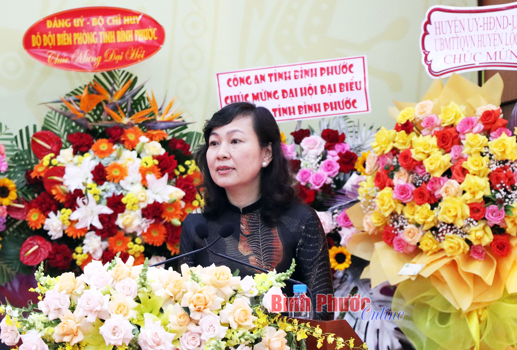 Phó bí thư Thường trực Tỉnh ủy, Chủ tịch HĐND tỉnh Bình Phước Huỳnh Thị Hằng phát biểu tại đại hội