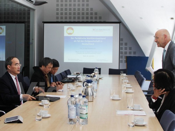 Rời trụ sở Quốc hội Đức, đoàn đại biểu Mặt trận Tổ quốc Việt Nam tiếp tục làm việc tại Tổng Hội Bình đẳng Liên bang Đức. Tại buổi làm việc, Chủ tịch Tổng Hội Bình đẳng Rolf Rosenbrock đã trình bày tham luận khái quát về cơ cấu, các lĩnh vực, hoạt động của Tổng Hội Bình đẳng Liên bang Đức, trong đó nêu ba thách thức của Đức hiện nay, gồm tình trạng mất cân đối trong xã hội gia tăng, biến đổi nhân khẩu học và tình trạng kinh tế hoá xã hội.