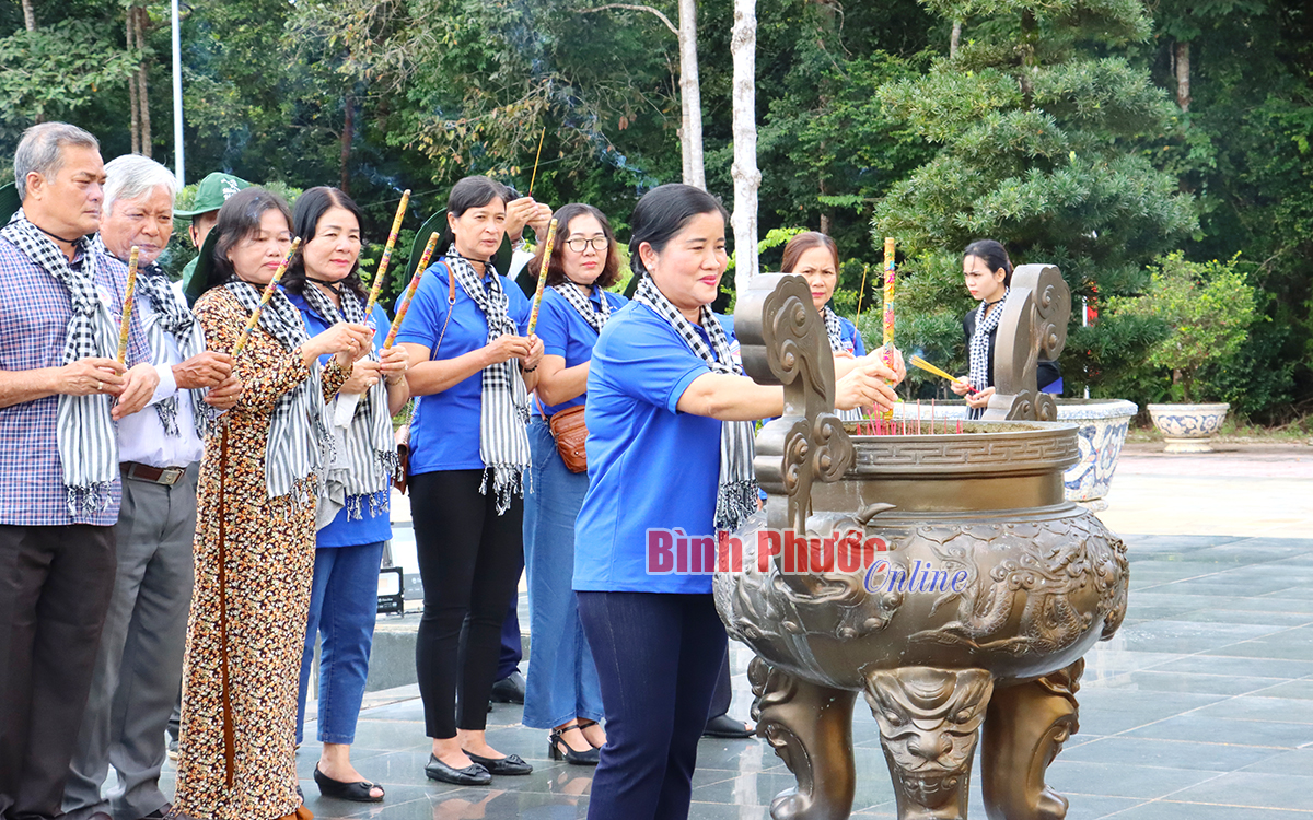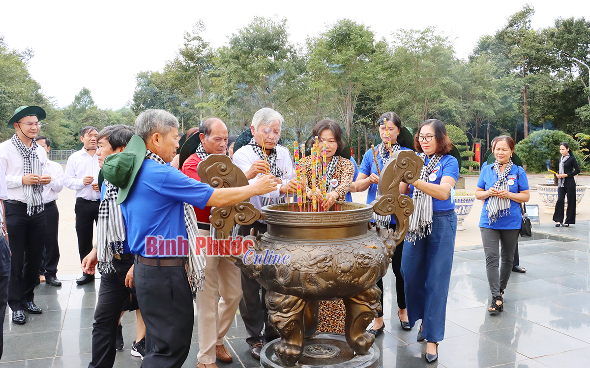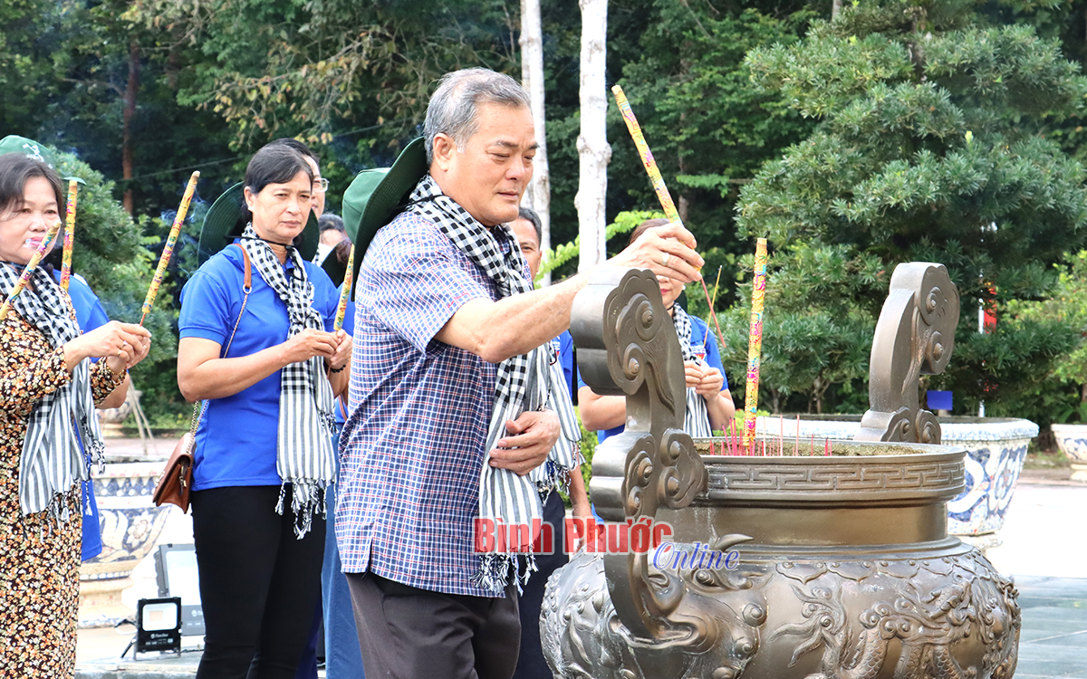 Trong sáng nay, đoàn đã đặt vòng hoa dâng hương tại các địa điểm: Đài tưởng niệm, Đền thờ tưởng niệm Chủ tịch Hồ Chí Minh, lãnh đạo Trung ương Cục miền Nam và Bộ Chỉ huy Miền Tà Thiết qua các thời kỳ. Tiếp đó, đoàn tham quan Khu di tích Quốc gia đặc biệt Bộ Chỉ huy Miền Tà Thiết và Thiền viện Trúc Lâm.