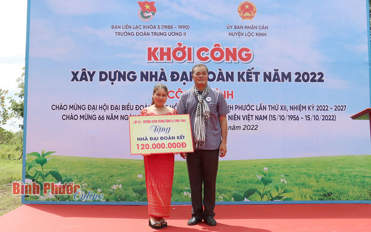 Đại diện Lớp K5, Trường Đoàn Trung ương II, Ủy viên Ban Thường vụ, Trưởng ban Tổ chức Tỉnh ủy Bình Phước Nguyễn Hồng Trà tặng 120 triệu đồng xây dựng nhà đại đoàn kết