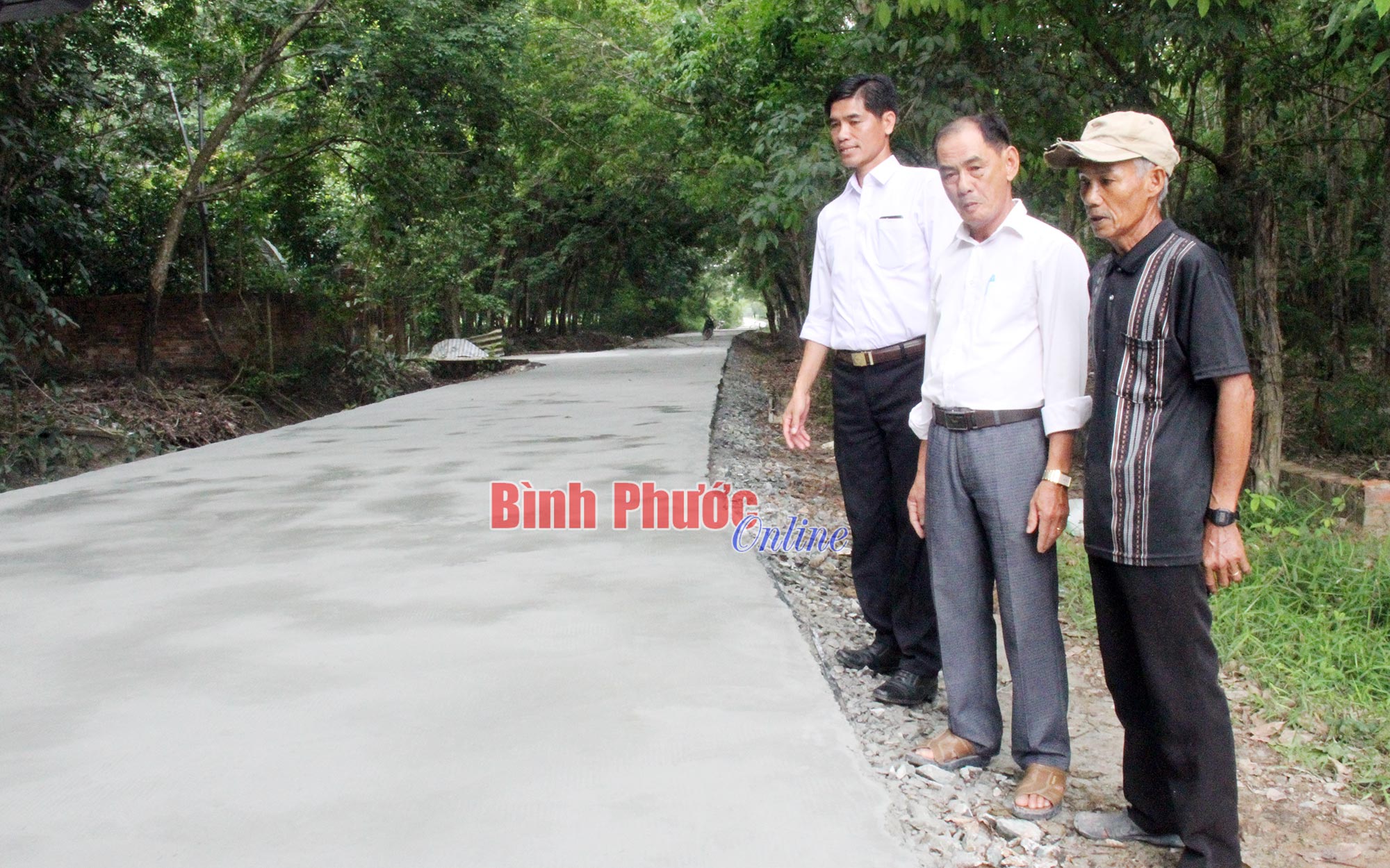 Cán bộ xã Tân Hiệp, huyện Hớn Quản cùng người dân tham gia giám sát chất lượng đường giao thông nông thôn trên địa bàn