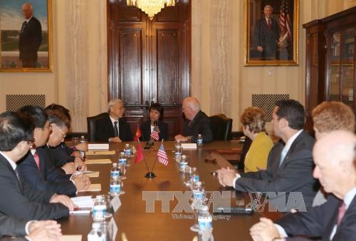 Trao đổi với Tổng Bí thư Nguyễn Phú Trọng, các đại biểu hai Viện lập pháp Hoa Kỳ bày tỏ vui mừng nhận thấy quan hệ hai nước nói chung và quan hệ giữa các cơ quan lập pháp của hai nước nói riêng đang trên đà phát triển mạnh mẽ trong thời gian qua; và tin tưởng rằng chuyến thăm chính thức Hoa Kỳ của Tổng Bí thư Nguyễn Phú Trọng có ý nghĩa rất quan trọng, góp phần thúc đẩy nội hàm quan hệ đối tác toàn diện Việt Nam – Hoa Kỳ tiếp tục phát triển thực chất và hiệu quả hơn nữa trong thời gian tới.