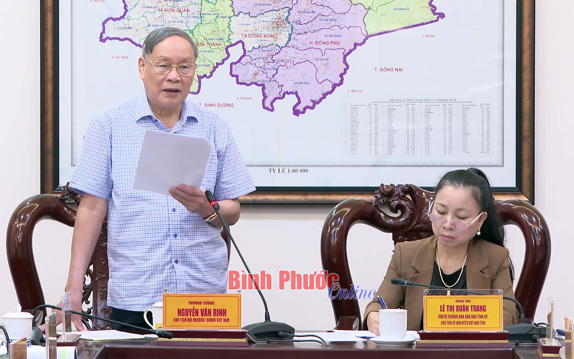 Phát biểu tại buổi làm việc, Thượng tướng Nguyễn Văn Rinh, nguyên Ủy viên Trung ương Đảng, nguyên Thứ trưởng Bộ Quốc phòng, Chủ tịch Hội Nạn nhân chất độc da cam/dioxin Việt Nam đánh giá cao kết quả thực hiện Chỉ thị số 43 của Bình Phước, nhất là công tác lãnh đạo, chỉ đạo của các cấp ủy đảng, công tác quản lý của chính quyền các cấp đối với công tác giải quyết hậu quả chất độc hóa học do quân đội Mỹ sử dụng trong chiến tranh ở Việt Nam. Đoàn cũng ghi nhận các kiến nghị, đề xuất của Bình Phước liên quan đến thực hiện Chỉ thị số 43.