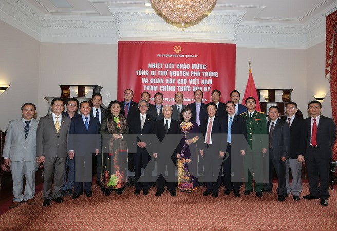 Nhấn mạnh Hoa Kỳ là địa bàn cực kỳ quan trọng, Tổng Bí thư lưu ý cán bộ, nhân viên Đại sứ quán cần quán triệt sâu sắc Nghị quyết Đại hội XI của Đảng, các Nghị quyết của Trung ương, tranh thủ tối đa mặt thuận, hạn chế tối đa mặt bất đồng, với tinh thần gác lại quá khứ, hướng tới tương lai, tiếp tục thúc đẩy, làm sâu sắc thêm quan hệ đối tác chiến lược Việt Nam-Hoa Kỳ, tạo thế chiến lược về ngoại giao với các đối tác lớn, quan trọng.