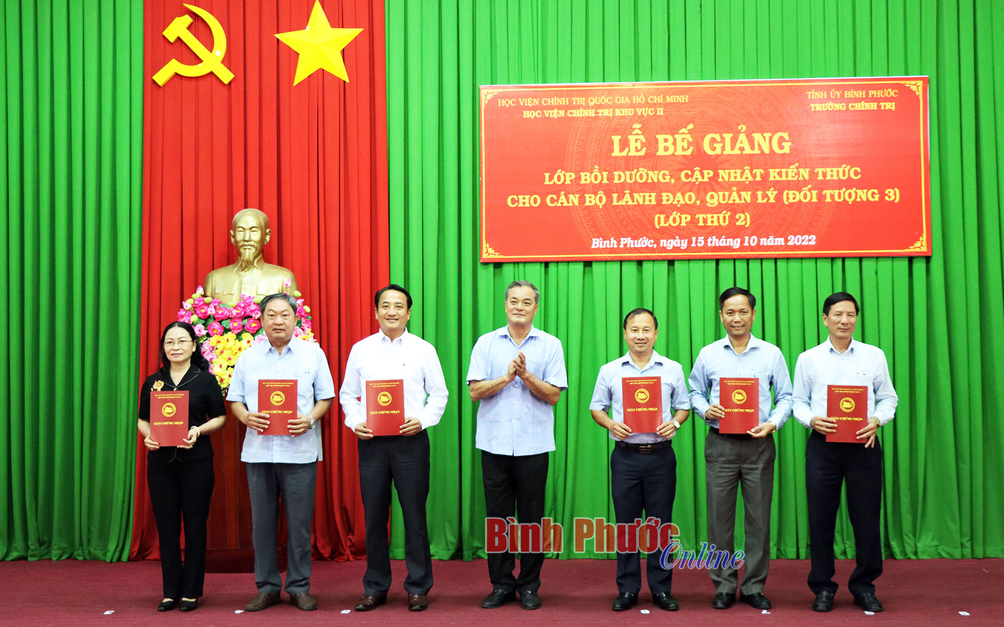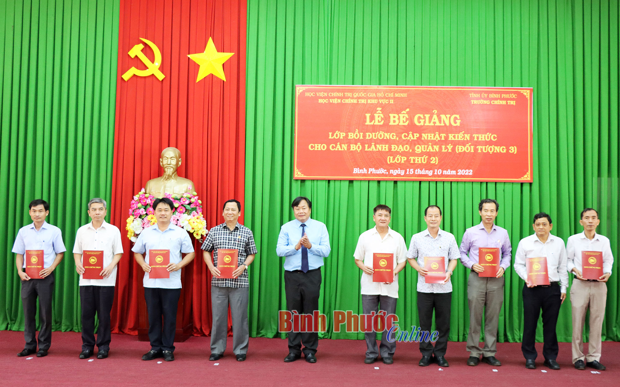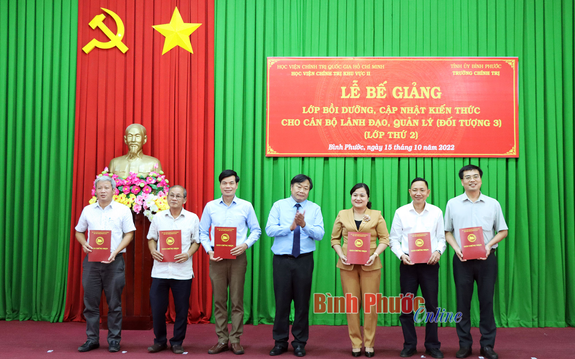 Tại buổi lễ bế giảng, lãnh đạo Tỉnh ủy và Học viện Chính trị khu vực II đã trao giấy chứng nhận hoàn thành khóa học của Giám đốc Học viện Chính trị khu vực II cho các học viên tham gia lớp bồi dưỡng.