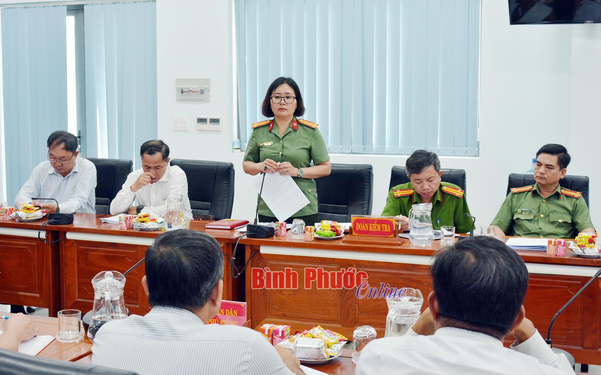 Lãnh đạo Công an huyện Phú Riềng báo cáo công tác phòng, chống tội phạm, tệ nạn xã hội và xây dựng phong trào toàn dân bảo vệ an ninh Tổ quốc, chuyển hóa địa bàn năm 2022