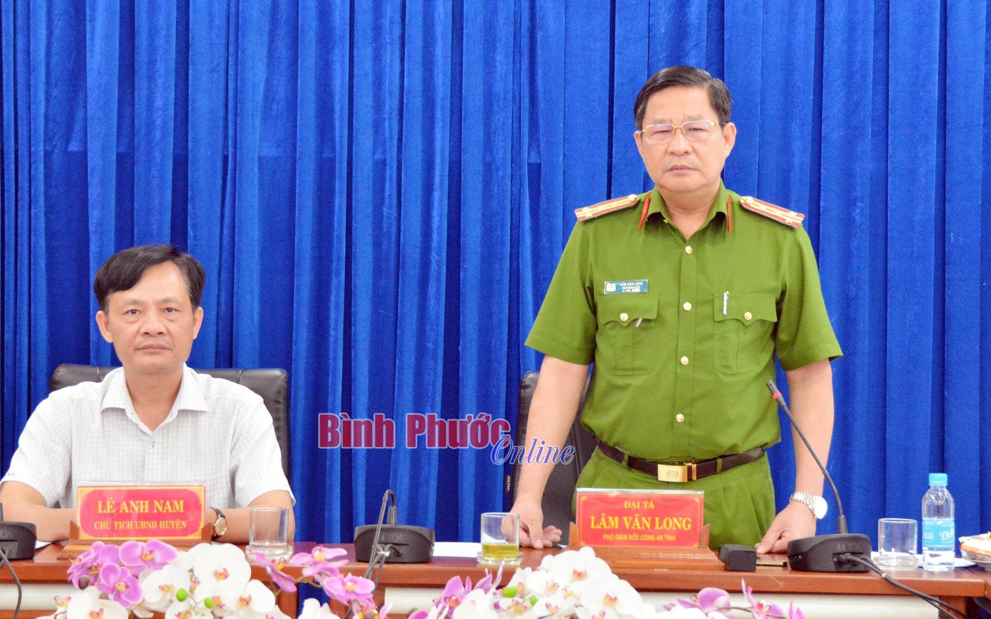Đại tá Lâm Văn Long, Phó Giám đốc Công an tỉnh đề nghị huyện Phú Riềng tăng cường ngăn chặn không để phát sinh tệ nạn xã hội, ma túy.