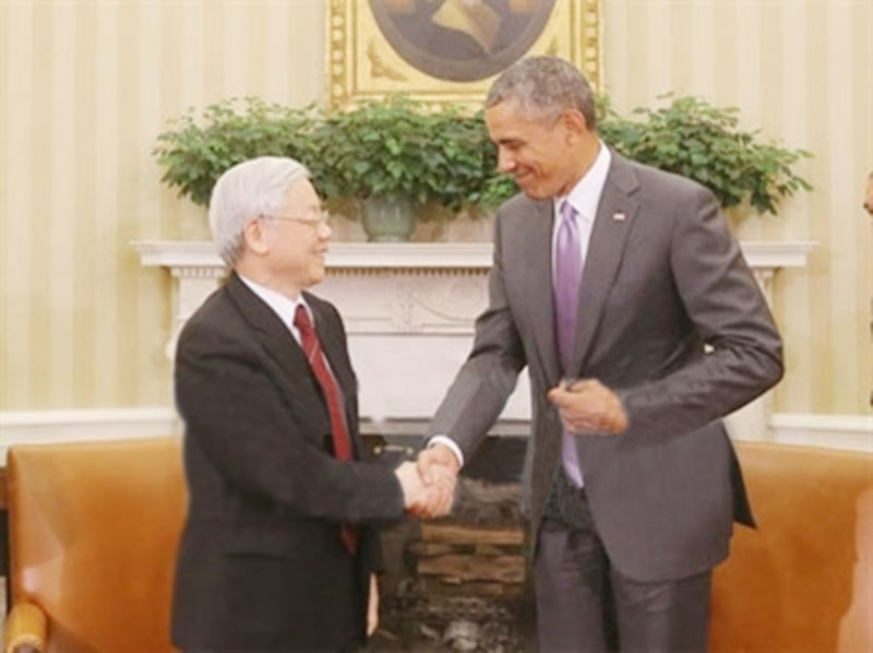 Tổng Bí thư Nguyễn Phú Trọng và Tổng thống Hoa Kỳ Barack Obama. (Ảnh TTXVN)