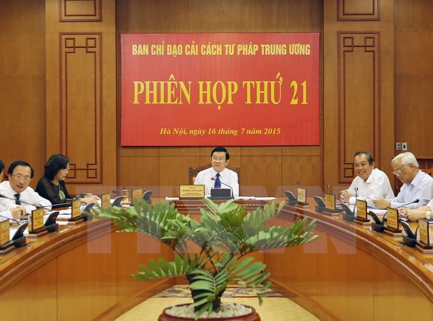 Chủ tịch nước Trương Tấn Sang, Trưởng Ban Chỉ đạo cải cách tư pháp Trung ương chủ trì phiên họp thứ 21 Ban Chỉ đạo cải cách tư pháp Trung ươngPhó Chủ tịch Quốc hội Uông Chu Lưu tham dự phiên họp.