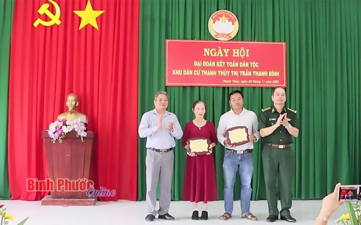 Dịp này, UBMTTQVN tỉnh Bình Phước đã tặng 10 phần quà, mỗi phần trị giá 500.000 đồng, 1 cụm loa di động và biểu dương 2 gia đình tiêu biểu; lãnh đạo huyện Bù Đốp tặng 1 phần quà, trị giá 5.000.000 đồng; UBND thị trấn Thanh Bình tặng 1 phần quà trị giá 1.000.000 đồng và biểu dương khen thưởng 15 cá nhân, 24 gia đình tiêu biểu.