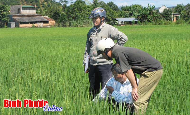 Cán bộ khuyến nông huyện thăm đồng lúa ở xã Đăng Hà - Ảnh: Minh Luận