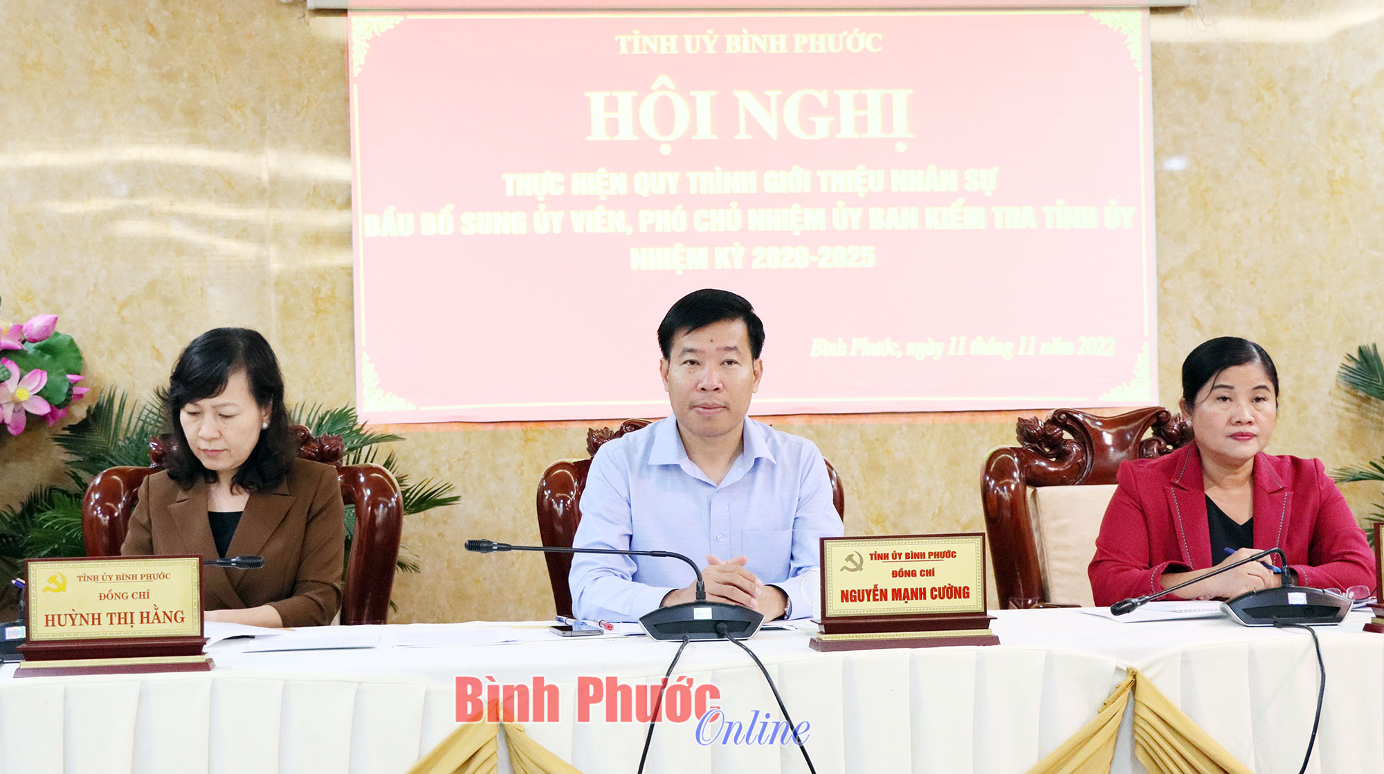 Ủy ban Kiểm tra Tỉnh ủy là cơ quan rất quan trọng của Tỉnh ủy, quy trình giới thiệu nhân sự bầu bổ sung Ủy viên, Phó Chủ nhiệm Ủy ban Kiểm tra Tỉnh ủy nhiệm kỳ 2020-2025 là nhiệm vụ quan trọng trong công tác cán bộ. Ủy viên Trung ương Đảng, Bí thư Tỉnh ủy Nguyễn Mạnh Cường đề nghị các bước của quy trình phải được thực hiện đúng nguyên tắc tập trung dân chủ, trên cơ sở công tác quy hoạch cán bộ. Các Ủy viên Ban Thường vụ Tỉnh ủy, Ủy viên Ban Chấp hành Đảng bộ tỉnh, cán bộ chủ chốt của tỉnh phải phát huy tinh thần trách nhiệm và thực hiện đúng quy định, hướng dẫn về công tác cán bộ.