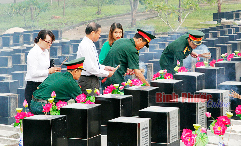 Các đoàn đại biểu: Bộ tư lệnh Quân khu 7; Tỉnh ủy, HĐND, UBND, UBMTTQVN tỉnh, Đoàn đại biểu Quốc hội và các sở, ban, ngành của tỉnh; đoàn đại biểu các lực lượng vũ trang, lãnh đạo huyện, thị xã đã kính cẩn đặt vòng hoa, thắp hương và tưởng niệm các anh hùng liệt sĩ.