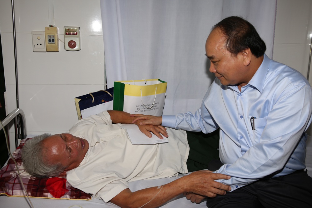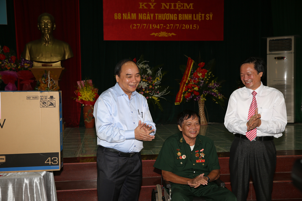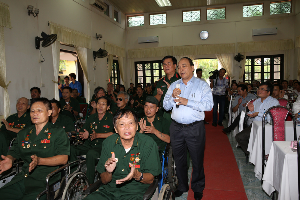 Tặng quà và nói chuyện với thương bệnh binh của Trung tâm, Phó Thủ tướng Nguyễn Xuân Phúc nhấn mạnh đất nước ta có được ngày hôm nay là do công sức đóng góp các anh hùng liệt sĩ, thanh niên xung phong, các thương binh, bệnh binh.