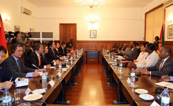 Thủ tướng Mozambique nhiệt liệt chào mừng Đoàn công tác của Chính phủ Việt Nam do Phó Thủ tướng Hoàng Trung Hải dẫn đầu thăm chính thức Mozambique, coi đây là sự kiện đặc biệt vì diễn ra đúng vào dịp hai nước kỷ niệm 40 năm Ngày thiết lập quan hệ ngoại giao (25-6-1975 - 25-6-2015).