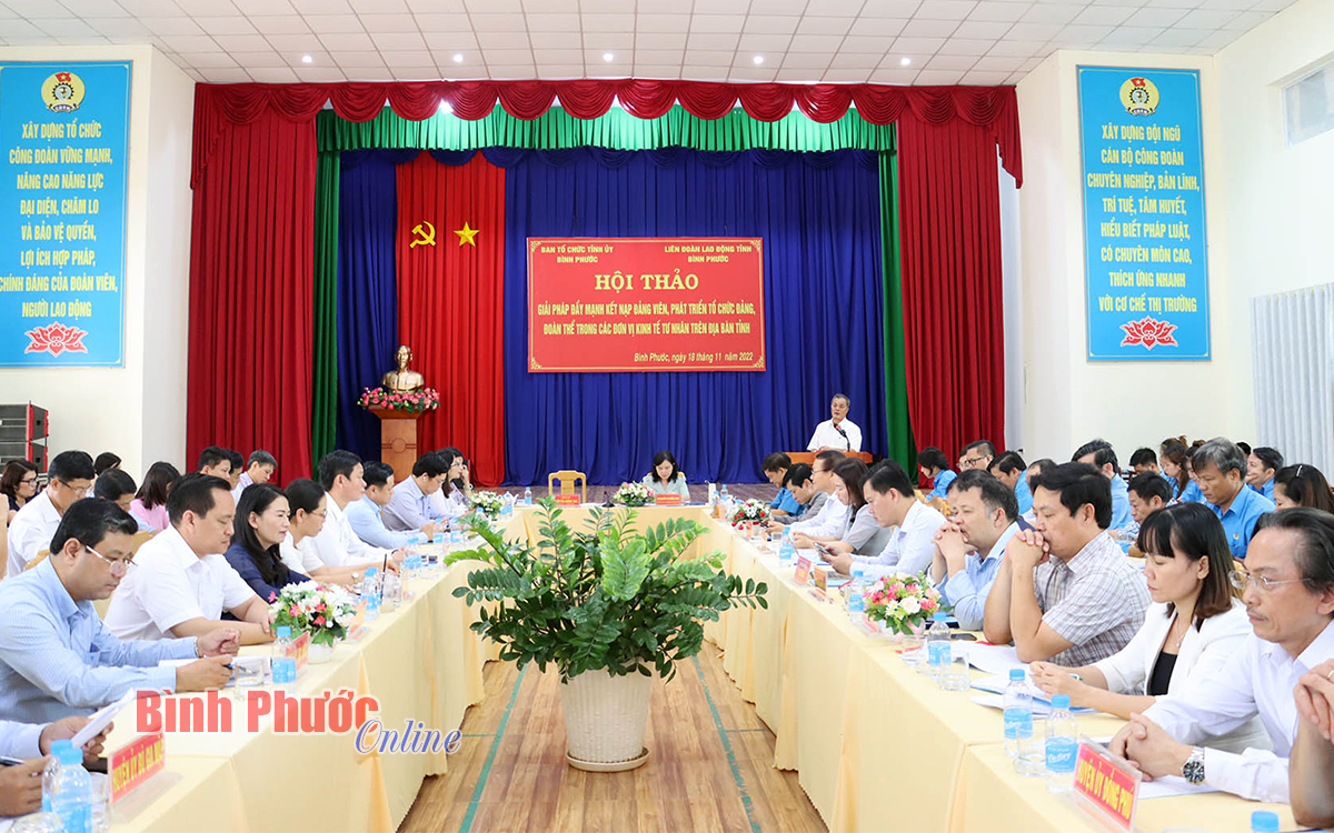 Từ đầu nhiệm kỳ 2020-2025, Đảng bộ Khối Cơ quan và Doanh nghiệp tỉnh Bình Phước đã kết nạp được 53 đảng viên. Trong đó, DN khối nhà nước kết nạp 35 đảng viên, DN ngoài nhà nước kết nạp 18 đảng viên, đạt 36% chỉ tiêu Nghị quyết Đại hội Đảng bộ nhiệm kỳ 2020-2025 về kết nạp đảng viên là công nhân trong DN tư nhân. Đảng bộ khối đã thành lập mới 5 chi, đảng bộ cơ sở thuộc loại hình DN, trong đó có 2 chi bộ thuộc cơ sở DN ngoài nhà nước, đạt 40% so với chỉ tiêu nghị quyết. Trong tháng 11-2022, Ban Thường vụ Đảng ủy khối đã hoàn thành mở 2 lớp bồi dưỡng nhận thức về Đảng cho 90 học viên là công đoàn viên, công nhân viên đang làm việc tại DN trong các khu công nghiệp của tỉnh. Đồng thời mở 1 lớp bồi dưỡng đảng viên mới dành cho 8 đảng viên dự bị là công đoàn viên, công nhân đang làm tại DN trong khu công nghiệp.