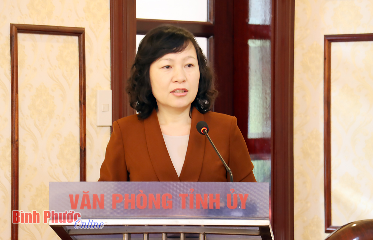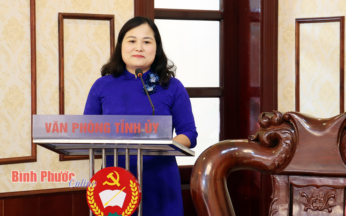 Tại buổi lễ, Phó Bí thư Thường trực Tỉnh ủy, Chủ tịch HĐND tỉnh Huỳnh Thị Hằng đã trao quyết định của Ban Bí thư về việc chuẩn y Ủy viên, Phó Chủ nhiệm Ủy ban Kiểm tra Tỉnh ủy Bình Phước nhiệm kỳ 2020-2025 đối với bà Tạ Thu Thủy, cán bộ Ủy ban Kiểm tra Tỉnh ủy, nguyên Phó Bí thư Thường trực Thị ủy Bình Long.