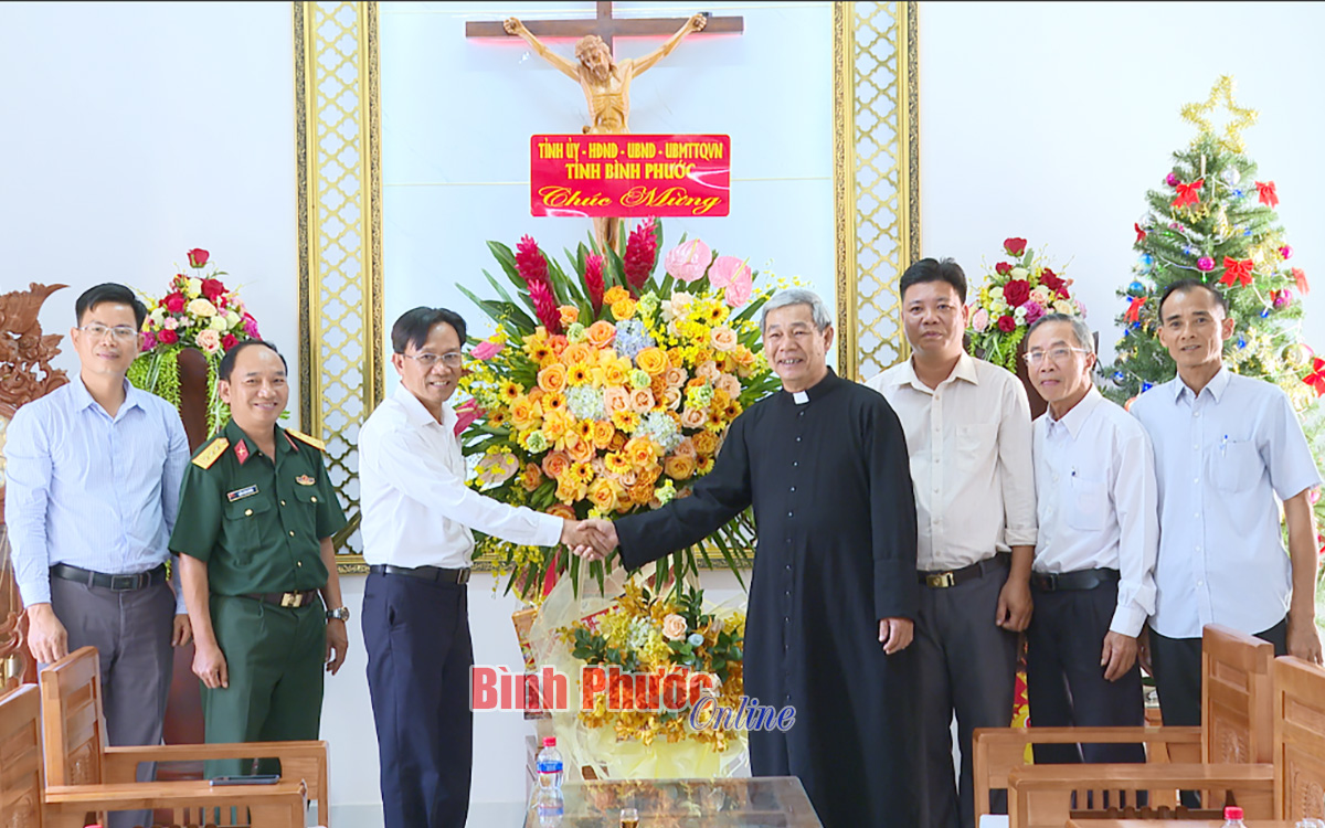 Trưởng ban Tôn giáo Sở Nội vụ Phạm Quang Hà chúc mừng các linh mục, các vị chức sắc, tu sĩ cùng đồng bào Công giáo đón một mùa Giáng sinh an lành, vui tươi, sức khỏe. Đồng thời mong muốn với phương châm sống phúc âm trong lòng dân tộc, thời gian tới các giáo hạt, giáo xứ tiếp tục tuyên truyền, vận động bà con giáo dân phát huy tình đoàn kết, sống tốt đời đẹp đạo, đồng hành với chính quyền địa phương và các tầng lớp nhân dân trong công cuộc xây dựng, phát triển quê hương Bình Phước ngày càng vững mạnh.
