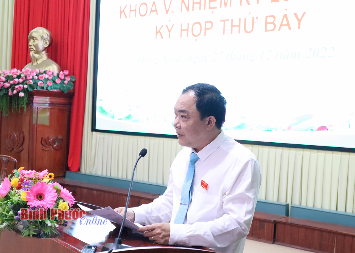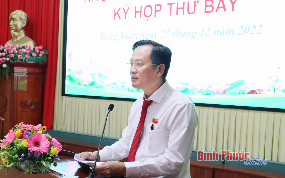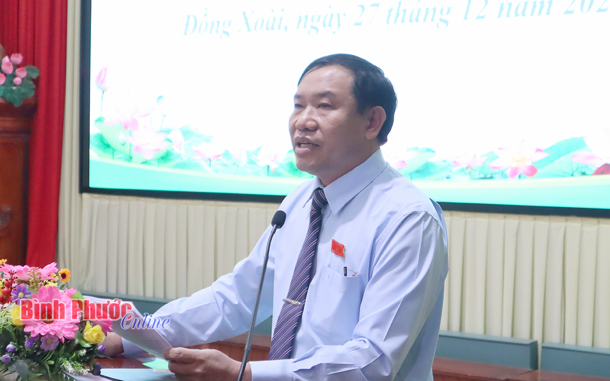 Chủ tịch HĐND thành phố Đồng Xoài Nguyễn Xuân Trường phát biểu bế mạc kỳ họp
