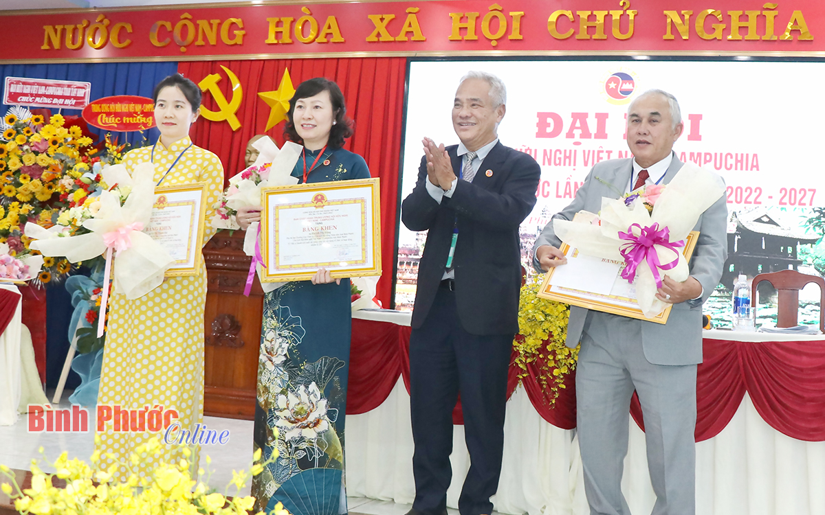 Dịp này, nguyên Chủ tịch Hội hữu nghị Việt Nam - Campuchia tỉnh Bình Phước nhiệm kỳ 2012-2017 Nguyễn Huy Phong được tặng kỷ niệm chương của Trung ương Hội hữu nghị Việt Nam - Campuchia. 1 tập thể, 3 cá nhân được tặng bằng khen của Trung ương Hội hữu nghị Việt Nam - Campuchia. Một tập thể và 4 cá nhân khác có nhiều đóng góp trong công tác thiện nguyện, góp phần tăng cường tình hữu nghị Việt Nam - Campuchia vinh dự được tặng bằng khen của UBND tỉnh.