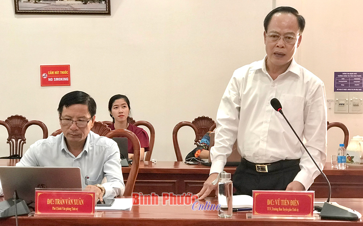 Tỉnh ủy viên, Trưởng ban Tuyên giáo Tỉnh ủy Vũ Tiến Điền phát biểu tại hội nghị
