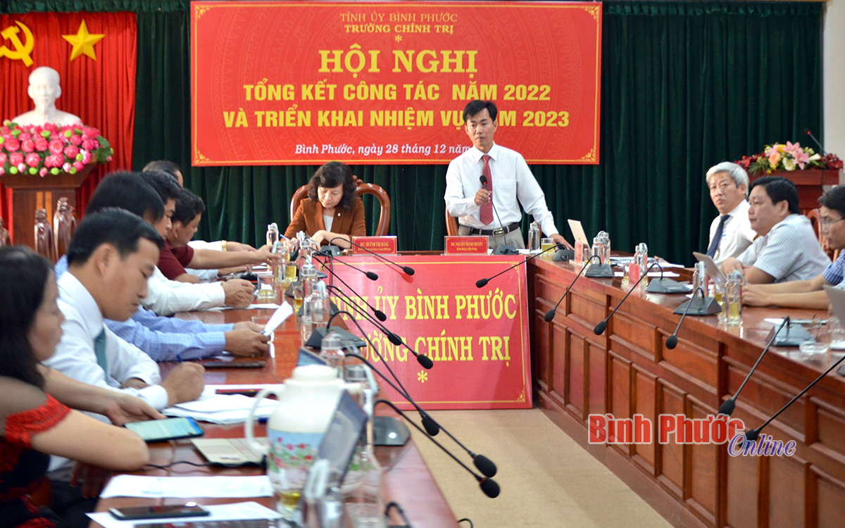 Trong năm 2022, Trường Chính trị tỉnh đã phối hợp với Học viện Chính trị khu vực II tổ chức khai giảng, tham gia quản lý các lớp cao cấp lý luận chính trị mở tại trường đạt hiệu quả. Trường đã tổ chức đào tạo được 23 lớp với 1.224 học viên, 27 lớp bồi dưỡng với 3.916 học viên; tham gia viết bài hội thảo Cụm thi đua các trường chính trị khu vực miền Đông Nam bộ, với tổng 5 bài viết; phát hành 3 bản tin thông tin lý luận và thực tiễn; tổ chức nghiệm thu 5 đề tài khoa học cấp cơ sở.