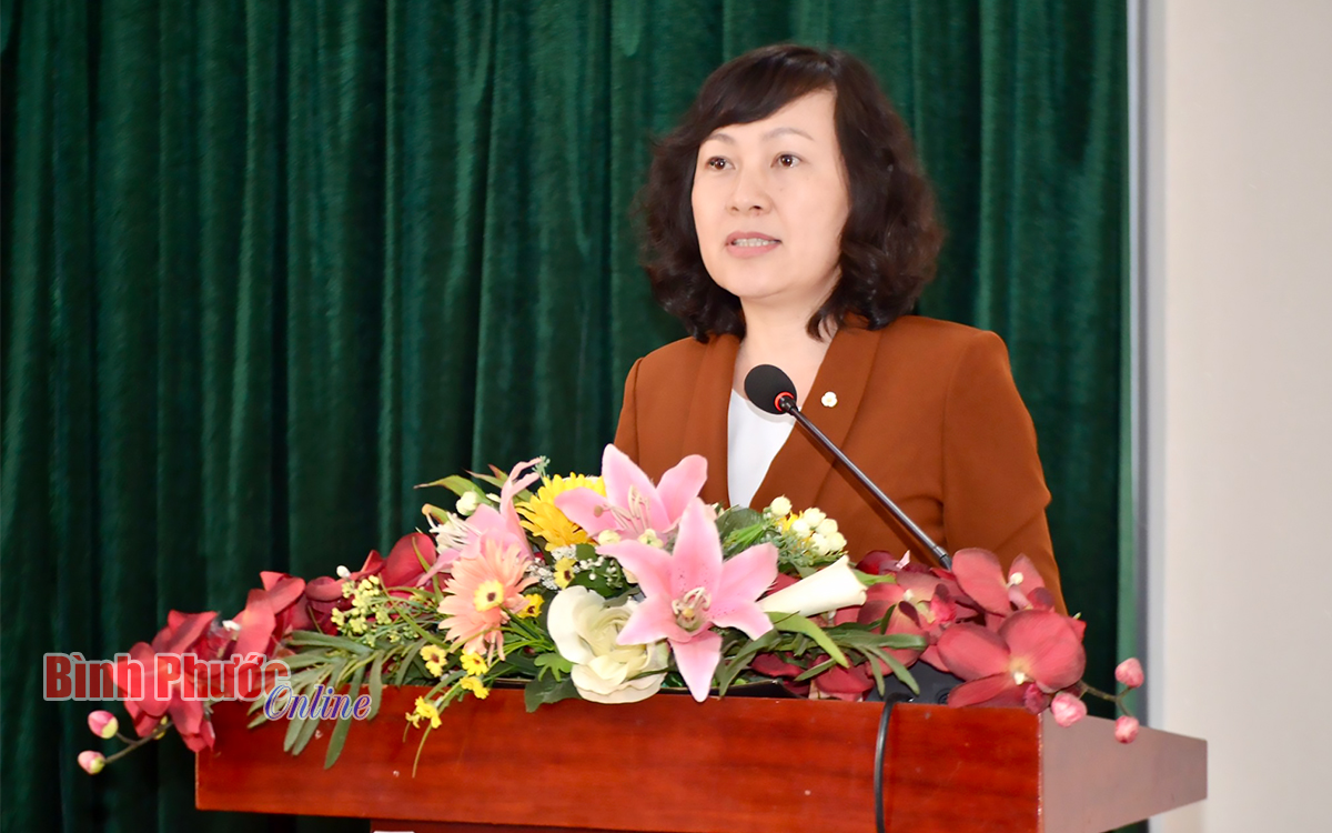 Phó Bí thư Thường trực Tỉnh ủy, Chủ tịch HĐND tỉnh Huỳnh Thị Hằng phát biểu chỉ đạo tại hội nghị