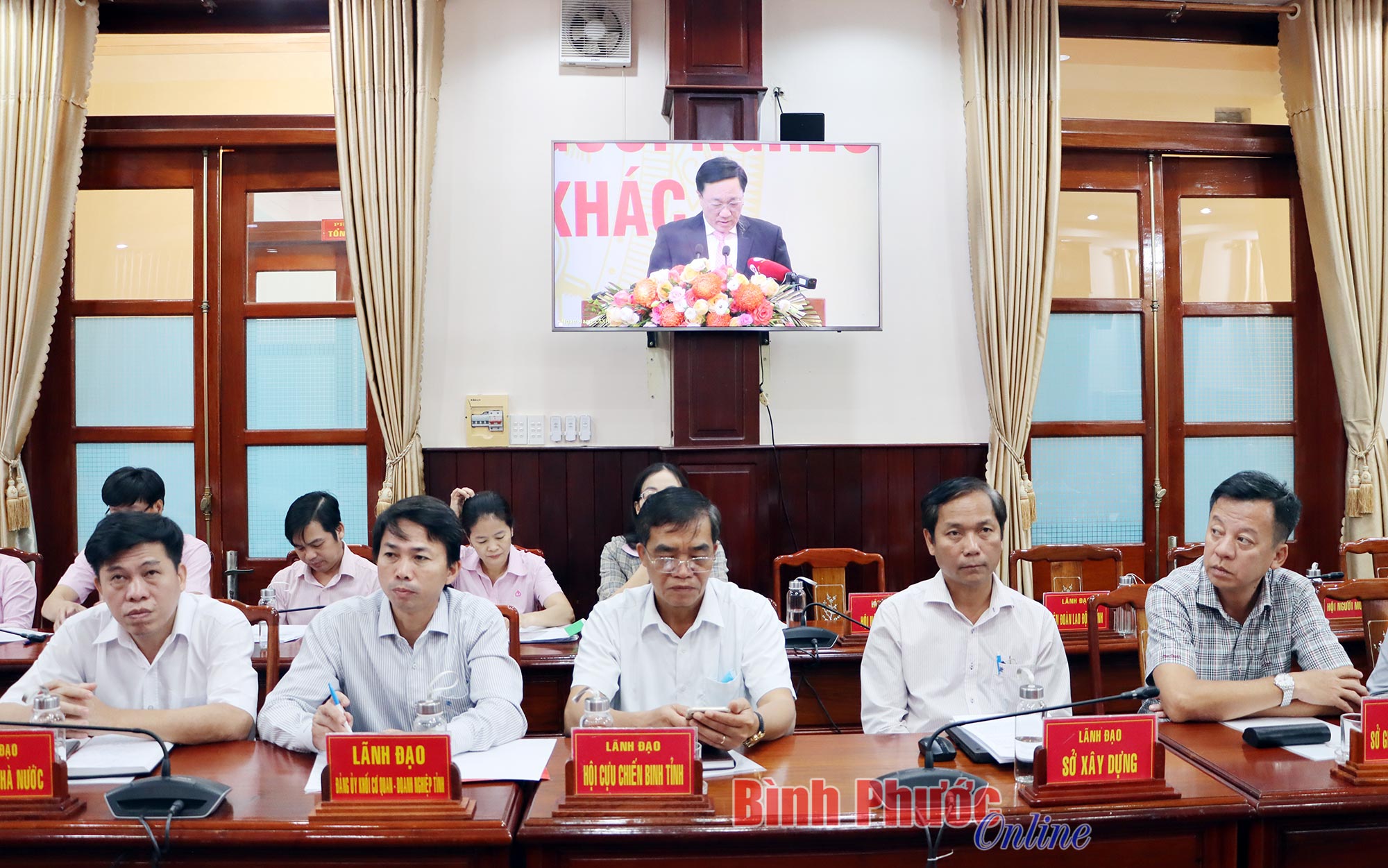 Tại điểm cầu Bình Phước, Chánh văn phòng UBND tỉnh Phạm Văn Trinh; Giám đốc Ngân hàng Chính sách xã hội chi nhánh tỉnh Trương Thanh Dũng và đại diện lãnh đạo các sở, ngành, huyện, thị xã, thành phố dự hội nghị.