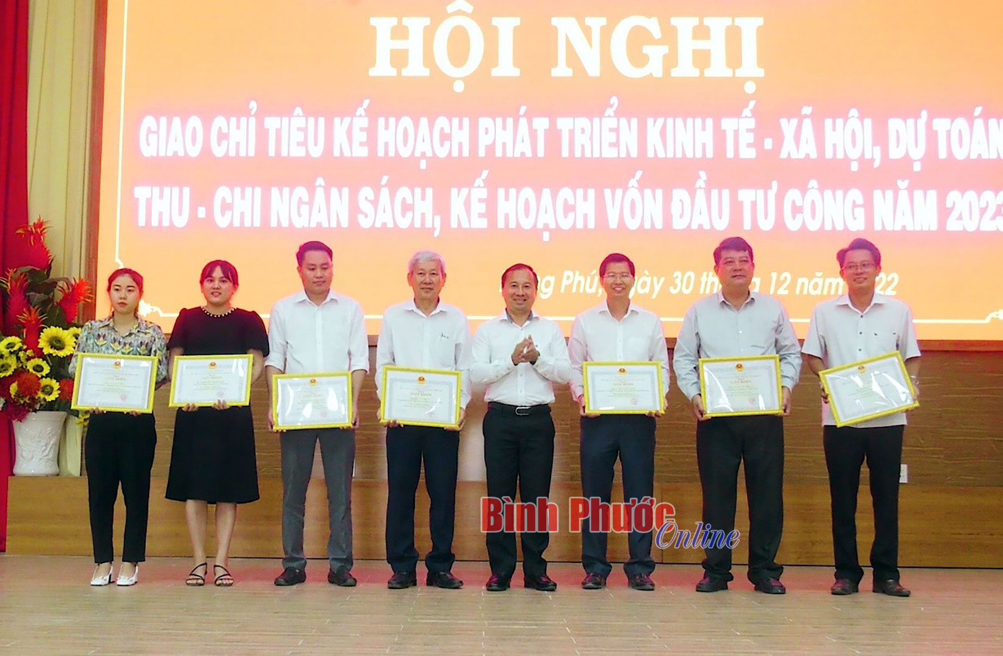 Dịp này, UBND huyện Đồng Phú đã khen thưởng đột xuất cho 4 tập thể, 8 cá nhân có thành tích xuất sắc trong công tác thu ngân sách nhà nước năm 2022.