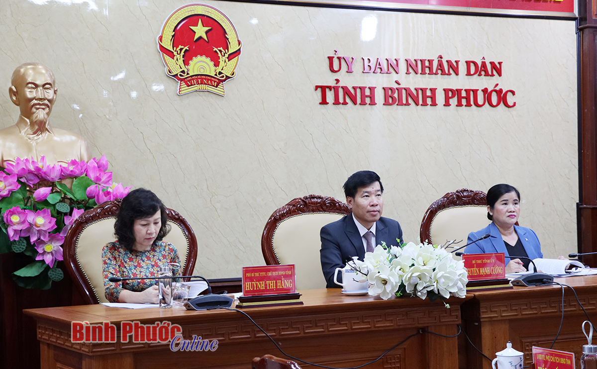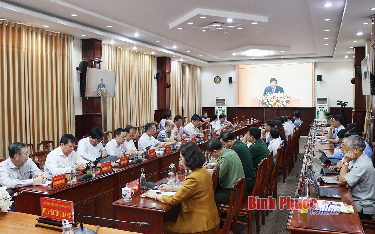Tại điểm cầu Bình Phước, Ủy viên Trung ương Đảng, Bí thư Tỉnh ủy Nguyễn Mạnh Cường; Phó Bí thư Thường trực Tỉnh ủy, Chủ tịch HĐND tỉnh Huỳnh Thị Hằng; Phó Bí thư Tỉnh ủy, Chủ tịch UBND tỉnh Trần Tuệ Hiền cùng lãnh đạo UBND tỉnh và các sở, ngành dự hội nghị.