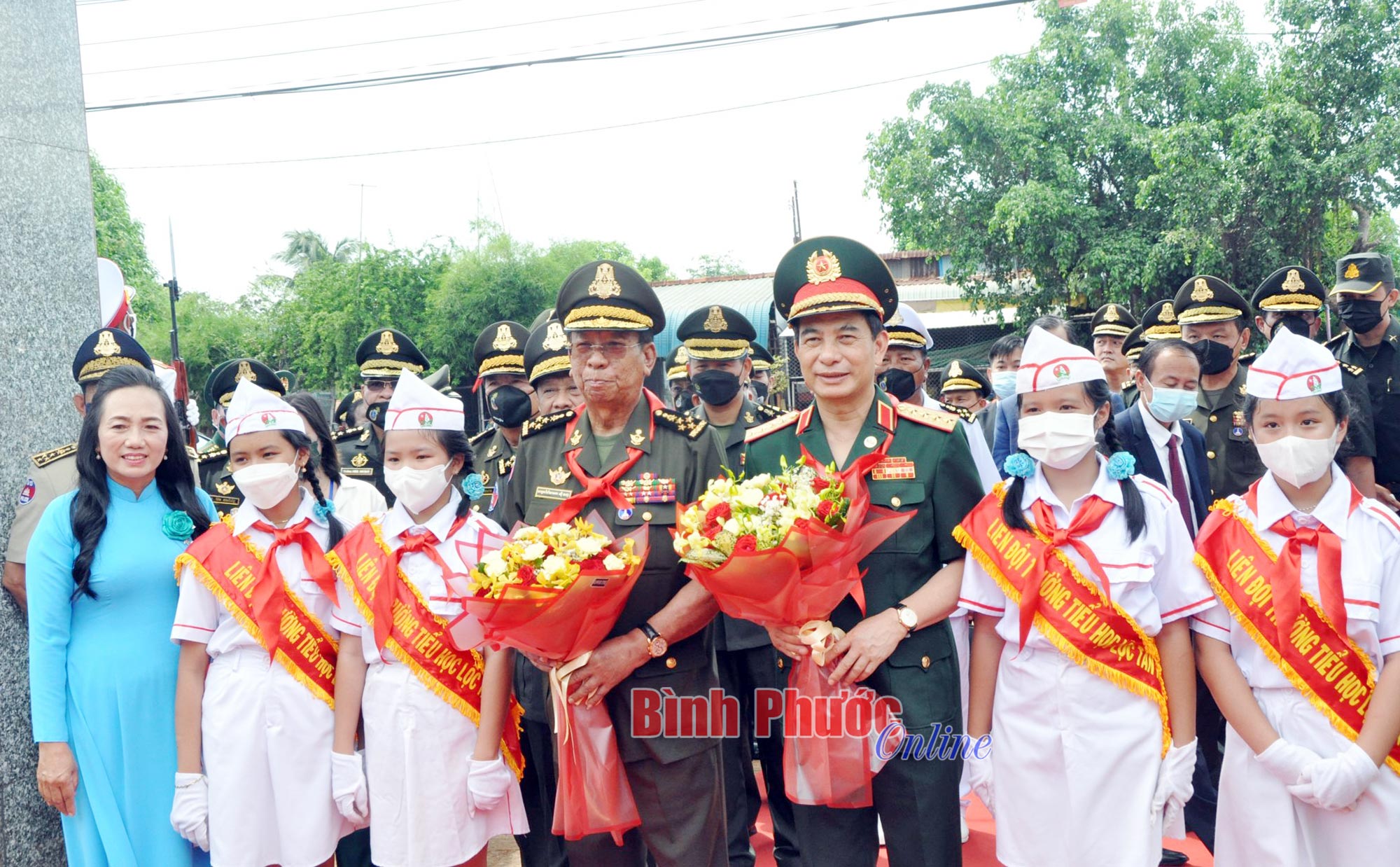 Phó Thủ tướng, Bộ trưởng Bộ Quốc phòng Campuchia Samdech Pichey Sena Tea Banh và Đại tướng Phan Văn Giang, Ủy viên Bộ Chính trị, Bộ trưởng Bộ Quốc phòng Việt Nam tại Chương trình giao lưu hữu nghị quốc phòng biên giới Việt Nam - Campuchia lần thứ nhất năm 2022, tại huyện Lộc Ninh - Ảnh: Xuân Túc