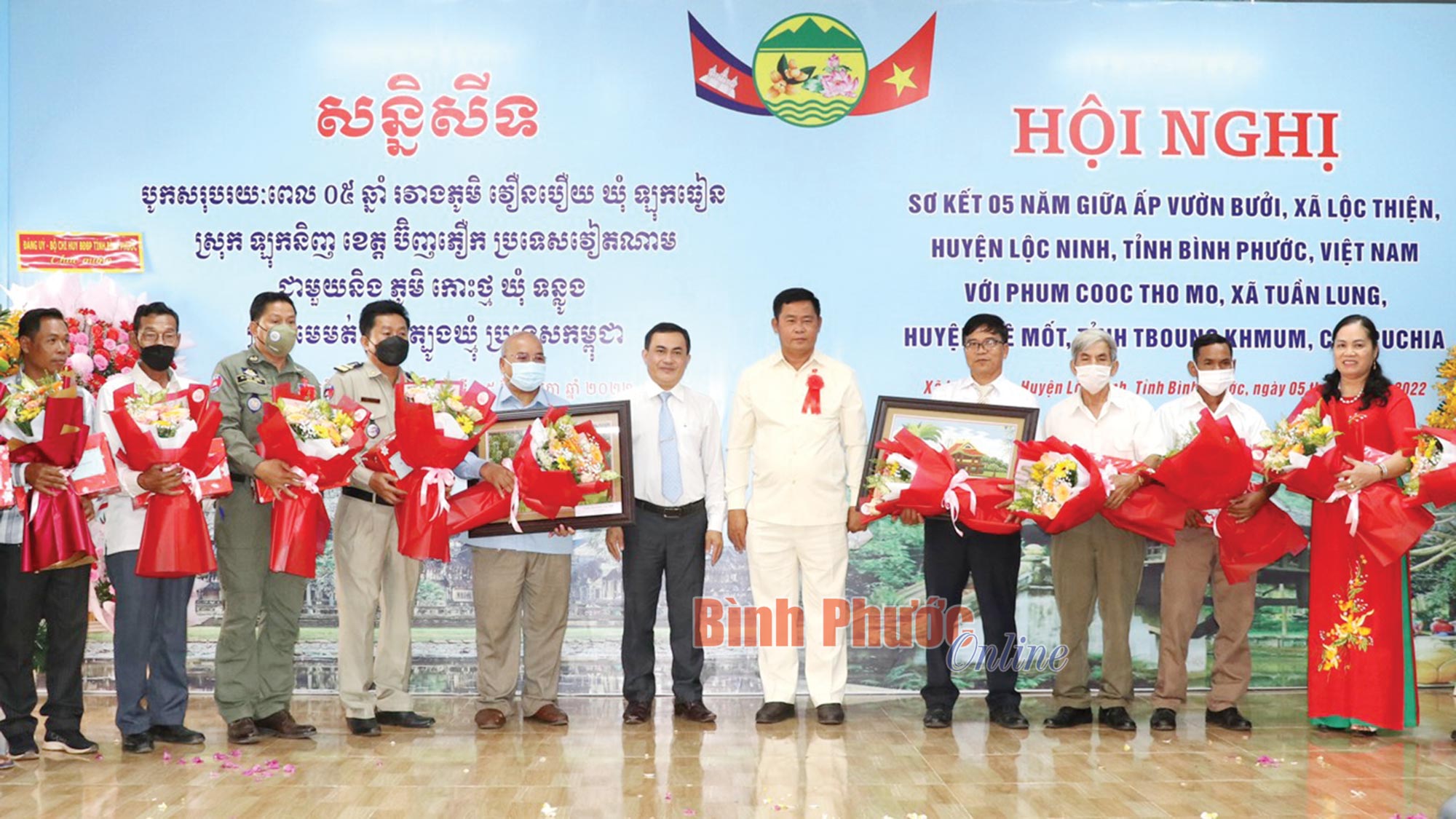 Bên cạnh nhiệm vụ phối hợp đắc lực, giúp tỉnh tổ chức rất thành công Chương trình gặp gỡ hữu nghị và hợp tác nhân dân Việt Nam - Campuchia lần thứ V vào đầu tháng 11-2022, Lộc Ninh còn thường xuyên trao đổi thông tin, nắm bắt tình hình, thắt chặt tình đoàn kết, hữu nghị nhân dân 2 nước qua các hoạt động nổi bật như: Thăm, tặng quà hỗ trợ phòng, chống dịch Covid-19; tặng quà và gửi thư chúc mừng nhân dịp tết Chôl Chnăm Thmây; hỗ trợ kinh phí công tác bầu cử hội đồng xã, phường năm 2022 cho huyện Snuol, tỉnh Kratie và huyện Mê Mốt, tỉnh Tbong Khmum thuộc Vương quốc Campuchia… với tổng hơn 850 triệu đồng và 23 phần quà (tổng trị giá 34,5 triệu đồng).