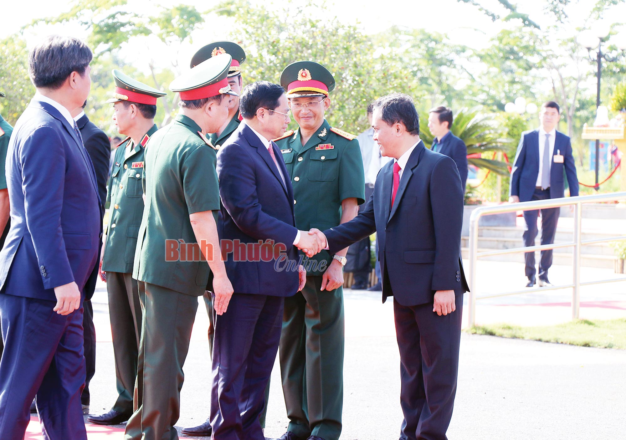 Ủy viên Ban Thường vụ Tỉnh ủy, Bí thư Huyện ủy, Chủ tịch UBND huyện Lộc Ninh Lê Trường Sơn đón Thủ tướng Chính phủ Phạm Minh Chính tại sự kiện đối ngoại nổi bật: Kỷ niệm “45 năm con đường tiến tới đánh đổ chế độ diệt chủng Pol Pot” của Thủ tướng Campuchia Hun Sen - Ảnh: Thanh Mảng