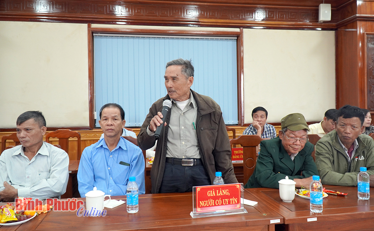 Các già làng, người uy tín, chức sắc tôn giáo phát biểu tại buổi họp mặt