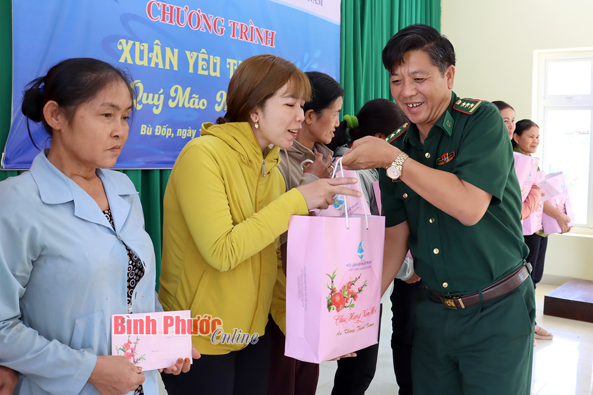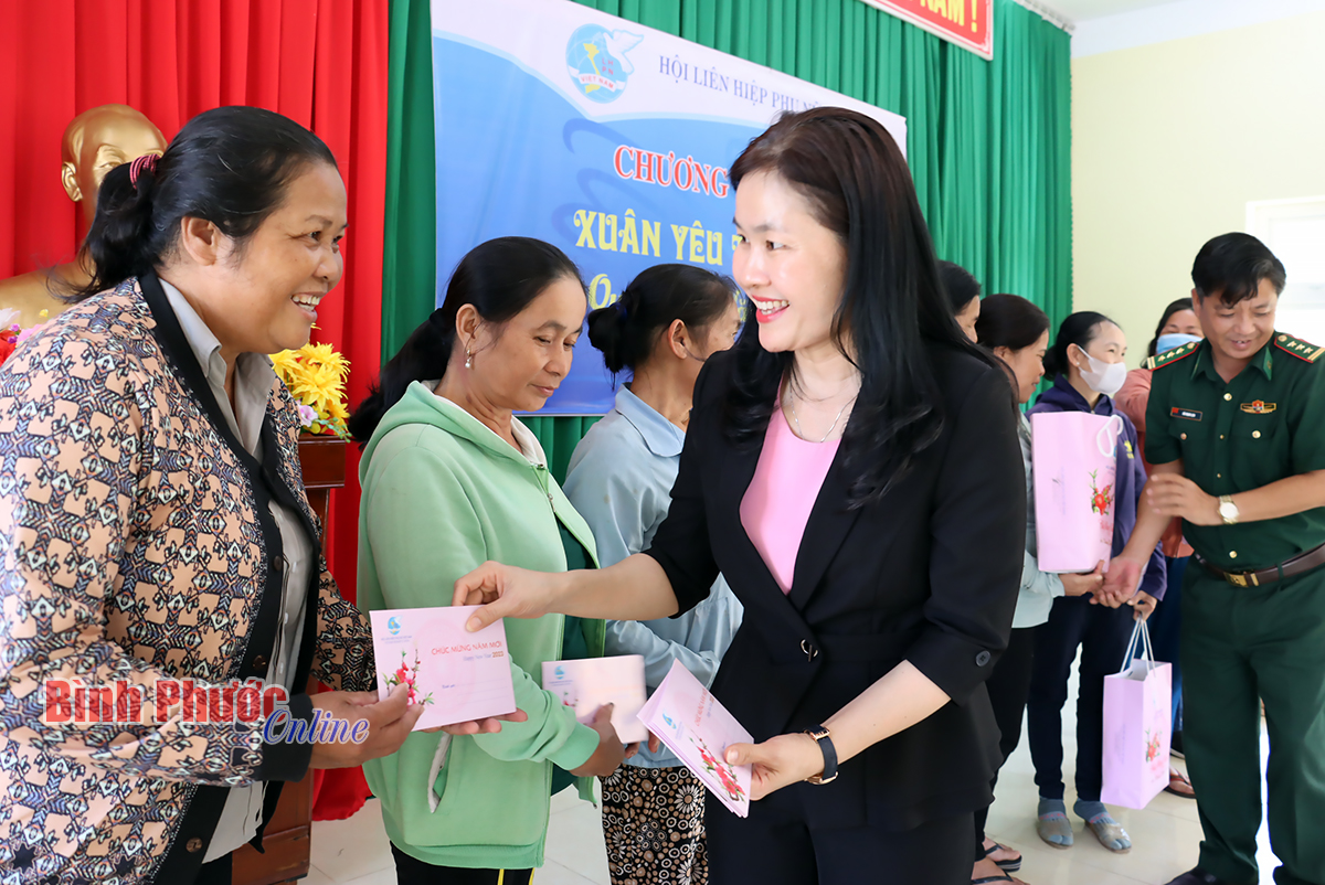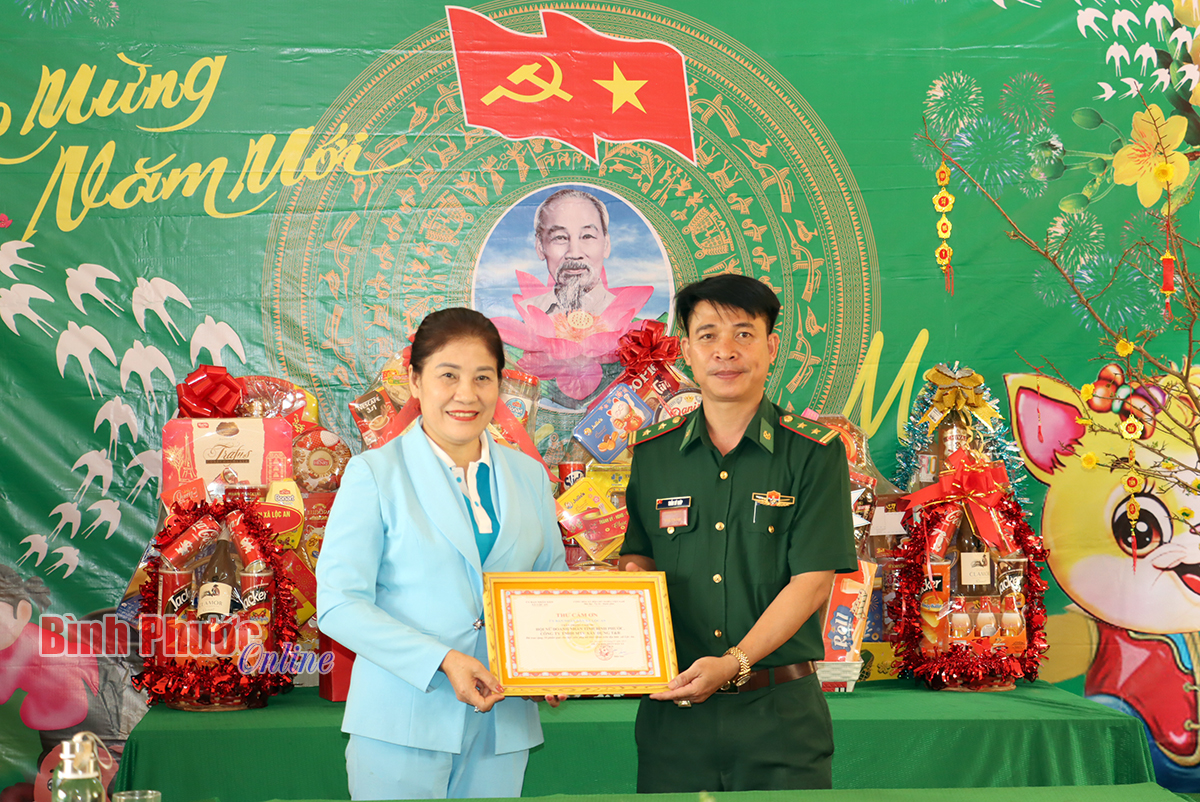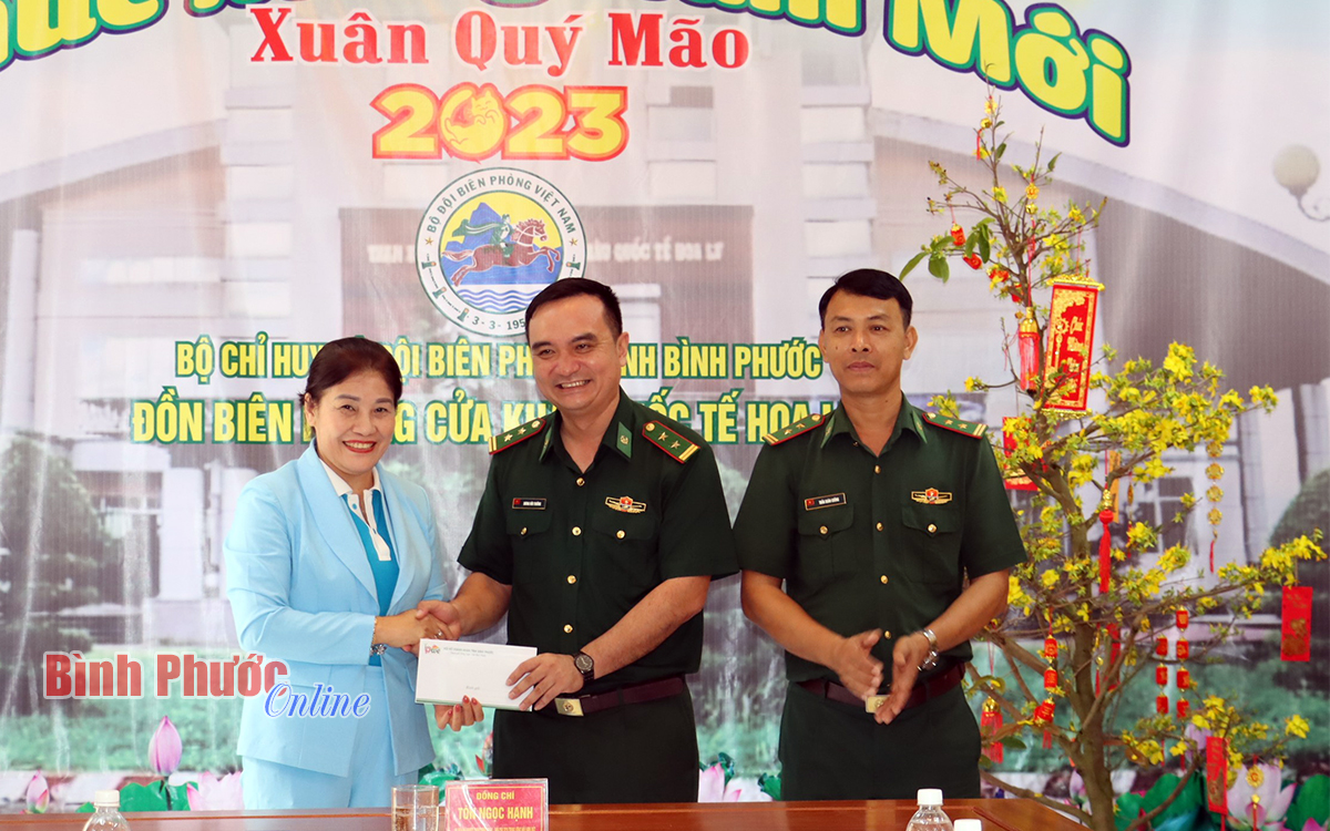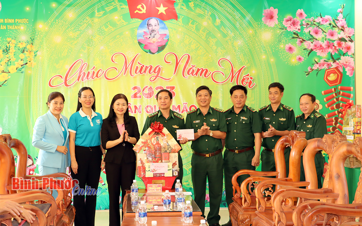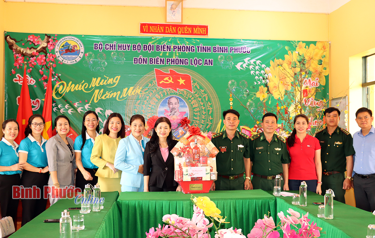 Đoàn đã đến thăm, chúc tết và tặng quà 4 đồn gồm: Đồn biên phòng cửa khẩu quốc tế Hoa Lư, Đồn biên phòng Lộc An (huyện Lộc Ninh), Đồn biên phòng Tân Thành và Đồn biên phòng Bù Đốp, huyện Bù Đốp. Tại mỗi đơn vị đến thăm, đoàn đã được nghe báo cáo nhanh tình hình hoạt động, thực hiện nhiệm vụ bảo vệ an ninh Tổ quốc vùng biên giới; sự phối hợp với hội LHPN các cấp trên địa bàn tỉnh để chăm lo cho phụ nữ vùng biên.