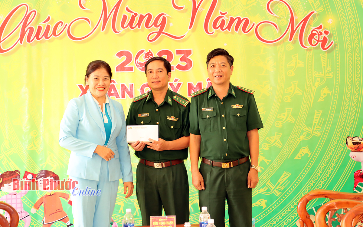Ủy viên dự khuyết Trung ương Đảng, Phó Chủ tịch Trung ương Hội LHPN Việt Nam Tôn Ngọc Hạnh tặng quà tết tại Đồn biên phòng Lộc An, huyện Lộc Ninh