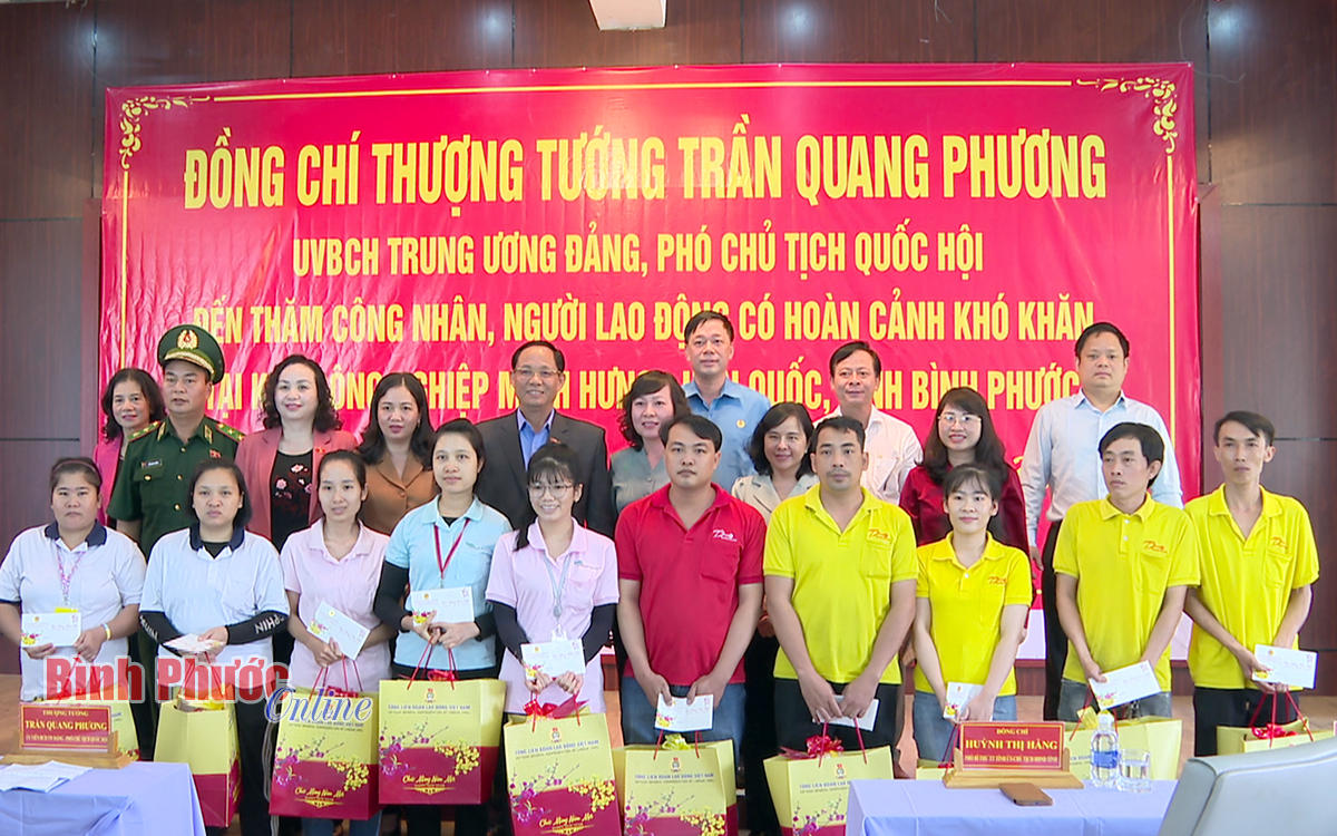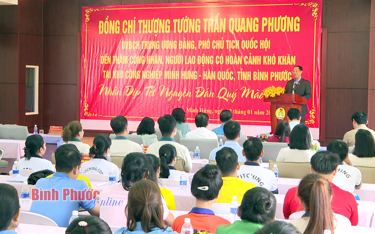 Tại Khu công nghiệp Minh Hưng - Hàn Quốc, Phó Chủ tịch Quốc hội Trần Quang Phương đã dành thời gian thăm hỏi đời sống, gia đình, thu nhập và công ăn việc làm cũng như các chế độ, chính sách cho công nhân các công ty trong khu công nghiệp. Đồng thời chia sẻ những khó khăn, vất vả của công nhân, nhất là trong năm 2022 nhiều công ty, doanh nghiệp bị cắt giảm đơn hàng, công nhân bị cắt giảm việc làm.