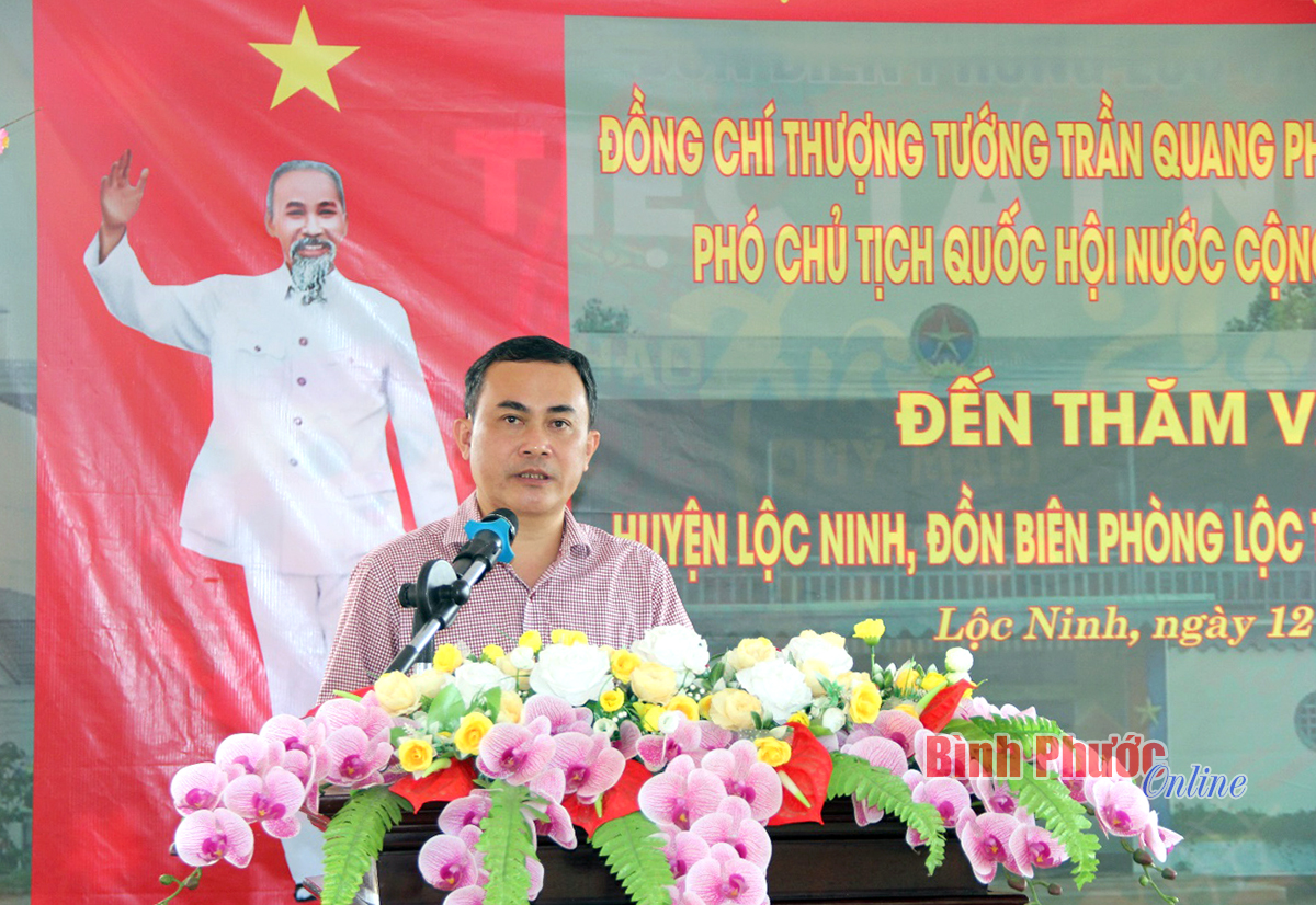 Thay mặt lãnh đạo Đảng, Nhà nước, Quốc hội, Phó Chủ tịch Quốc hội Trần Quang Phương chúc Đảng bộ, chính quyền, nhân dân huyện Lộc Ninh và cán bộ, chiến sĩ Đồn Biên phòng Lộc Tấn năm mới dồi dào sức khỏe, mọi sự may mắn, an khang, thịnh vượng, đón tết vui tươi, đầm ấm.