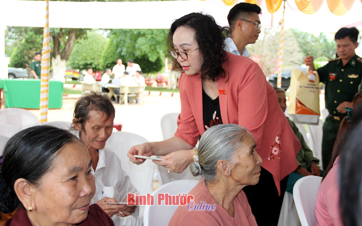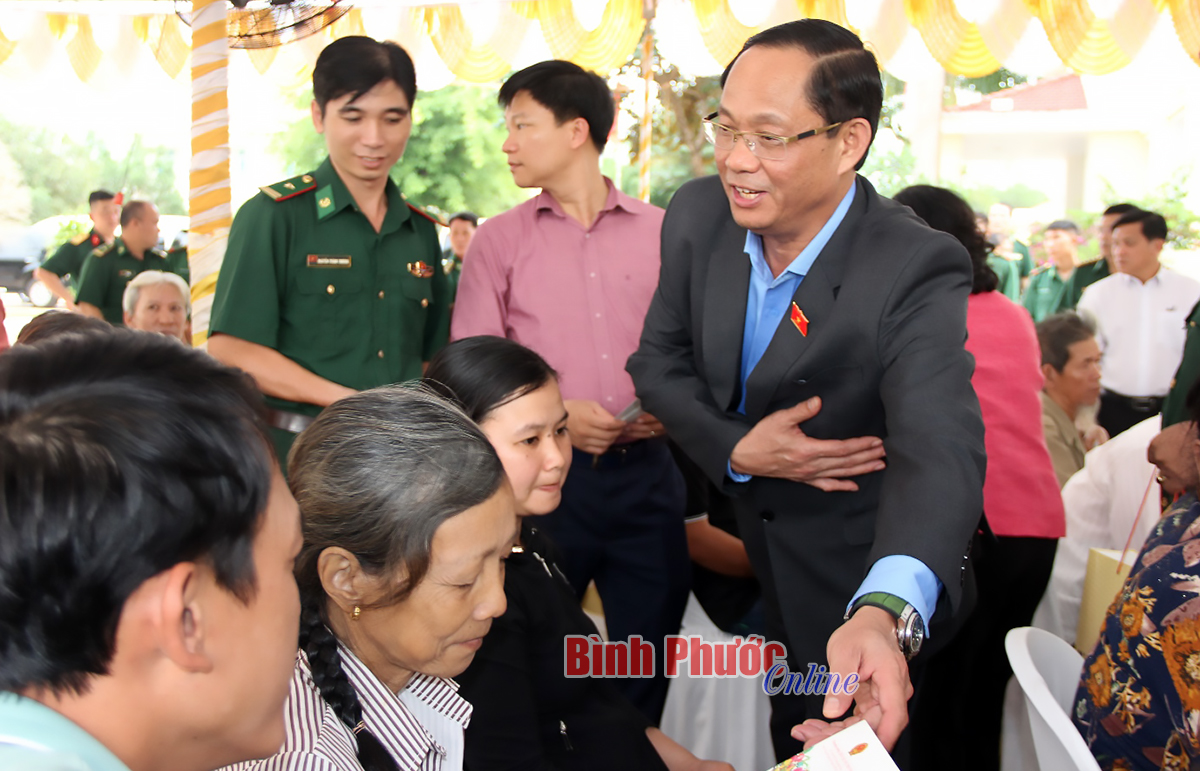 Dịp này, Đoàn công tác của Quốc hội đã tặng 50 phần quà tết cho các hộ gia đình chính sách, người có công của huyện Lộc Ninh; đồng thời tặng quà cho huyện Lộc Ninh, Ban Chỉ huy Quân sự huyện, Công an huyện Lộc Ninh và Đồn Biên phòng Lộc Tấn, Bộ Chỉ huy Bộ đội Biên phòng tỉnh Bình Phước.