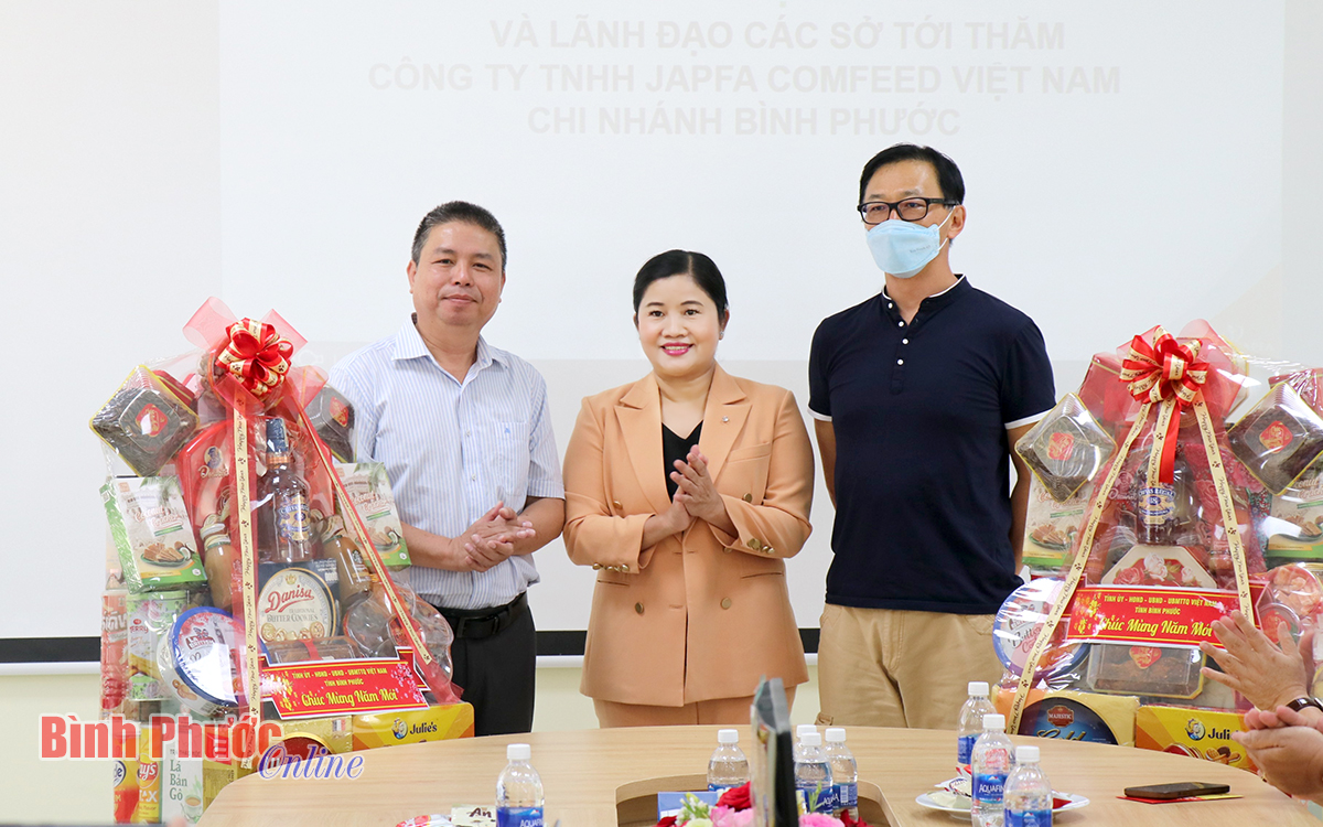 Gửi lời chúc mừng tốt đẹp nhất đến lãnh đạo và người lao động nhân dịp đón xuân mới Quý Mão 2023, Chủ tịch UBND tỉnh Trần Tuệ Hiền trân trọng ghi nhận những đóng góp của Công ty TNHH Japfa Comfeed Việt Nam (Khu công nghiệp Minh Hưng - Sikico, xã Đồng Nơ, huyện Hớn Quản) vào sự phát triển kinh tế - xã hội của tỉnh. Trong bối cảnh bị tác động của dịch Covid-19 nhưng doanh nghiệp đã nỗ lực để tạo việc làm, thu nhập ổn định cho người lao động. Chủ tịch UBND tỉnh Trần Tuệ Hiền cho biết, nhiệm vụ trước mắt của năm 2023 là khó khăn, thách thức nhân lên gấp nhiều lần và các chỉ tiêu, nhiệm vụ của tỉnh cũng được đề ra cao hơn. Lãnh đạo tỉnh mong doanh nghiệp tiếp tục triển khai các công trình, dự án thành công và mang lại hiệu quả cao.