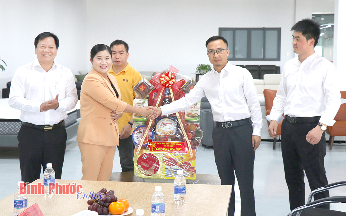 Cũng trong sáng nay, Chủ tịch UBND tỉnh Trần Tuệ Hiền cùng đoàn công tác đã đến thăm, chúc tết Công ty TNHH Jason Furniture Việt Nam (TP. Đồng Xoài) và Công ty TNHH MTV xổ số kiến thiết và dịch vụ tổng hợp Bình Phước.