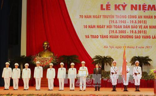 BPO - Sáng 18-8, tại Thủ đô Hà Nội, Ban Chấp hành Trung ương Đảng Cộng sản Việt Nam, Quốc hội, Chủ tịch nước, Chính phủ nước CHXHCN Việt Nam, Ủy ban Trung ương MTTQ Việt Nam, Đảng ủy Công an Trung ương và Bộ Công an đã tổ chức trọng thể Lễ mít tinh kỷ niệm 70 năm Ngày Truyền thống Công an nhân dân Việt Nam (19-8-1945 - 19-8-2015) và 10 năm Ngày hội toàn dân bảo vệ An ninh Tổ quốc (19-8-2005 - 19-8-2015) và trao Huân chương Sao Vàng (lần thứ tư) tặng lực lượng Công an nhân dân Việt Nam.