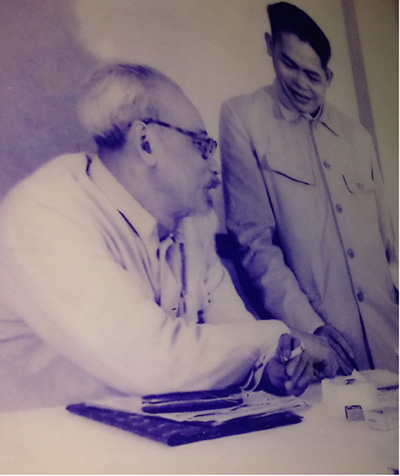 Ông Huỳnh Văn Tiểng trong một lần gặp Bác Hồ.
